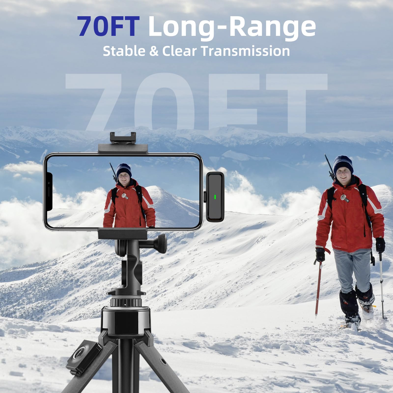 • 70 Ft Long Range Recording: The maximum effective distance of this cordless lav mic usbc reaches up to 70 feet. These tiny mics come in handy when you have to stand far away from you phones to record. These lapel microphones also enjoy steady and low latency recording, providing optimal experience for long distance recording
