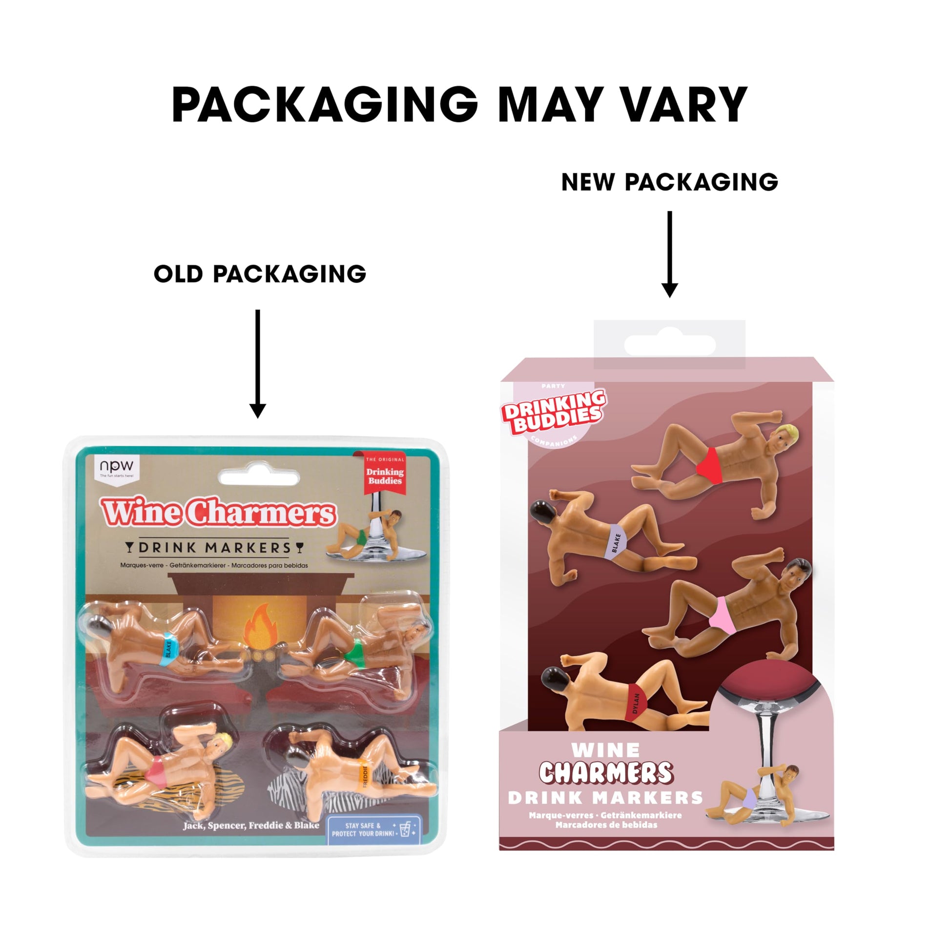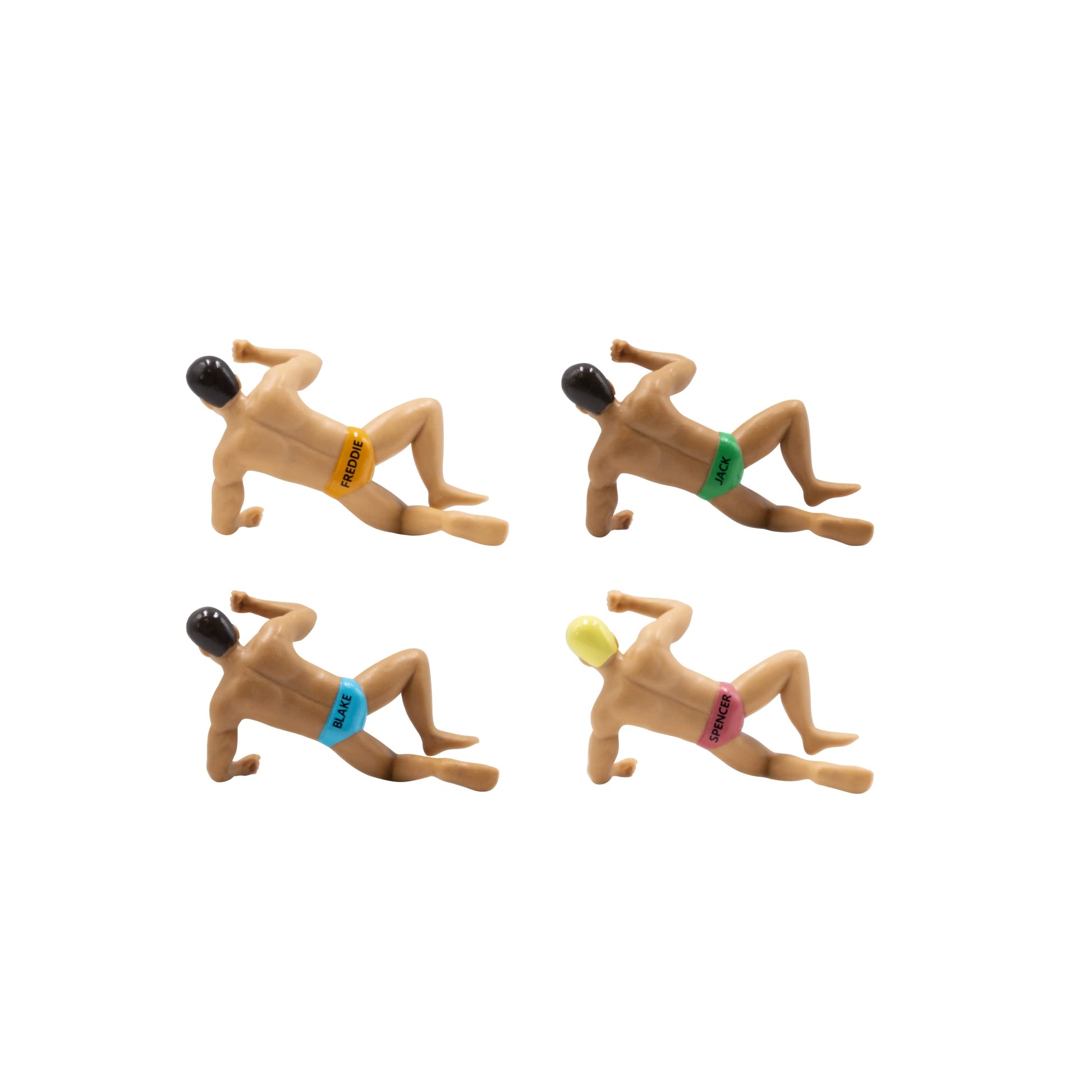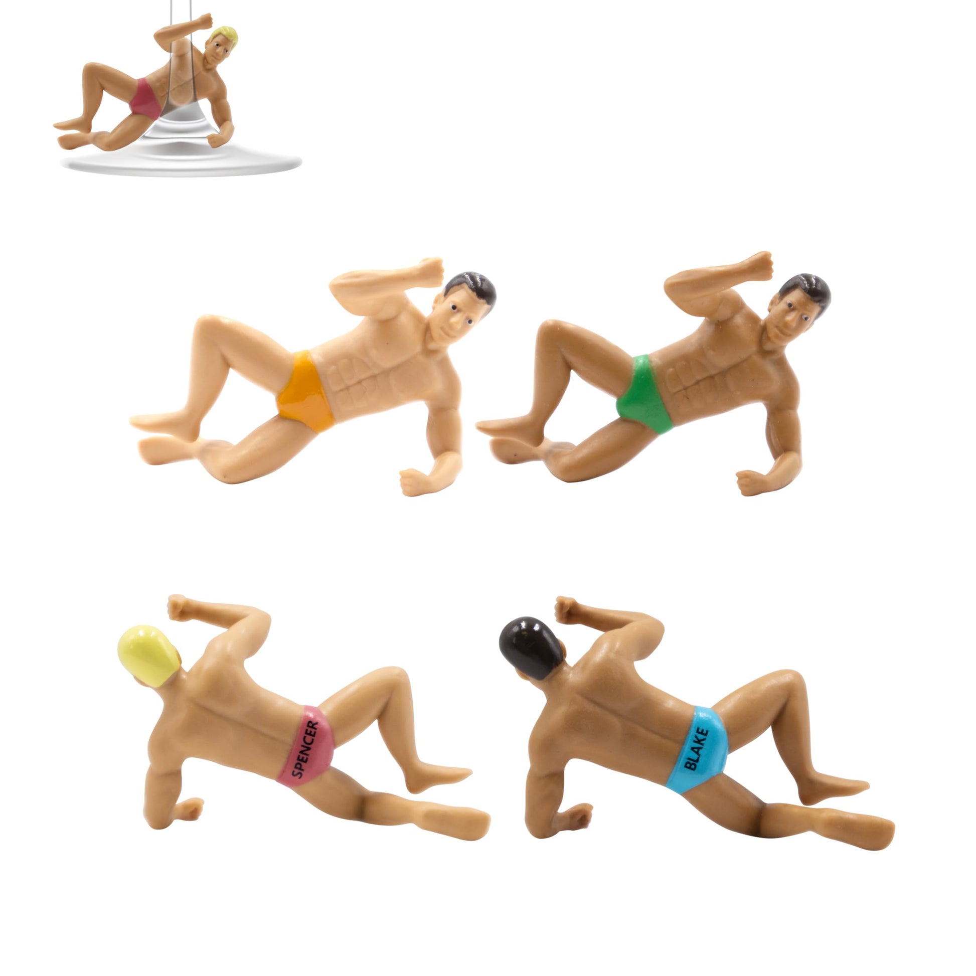 • Unique Drink Markers: Add fun and flair to any party with these original drinking buddies drink charmers, a 4-pack of hunky guys to keep your drinks from being mixed up!