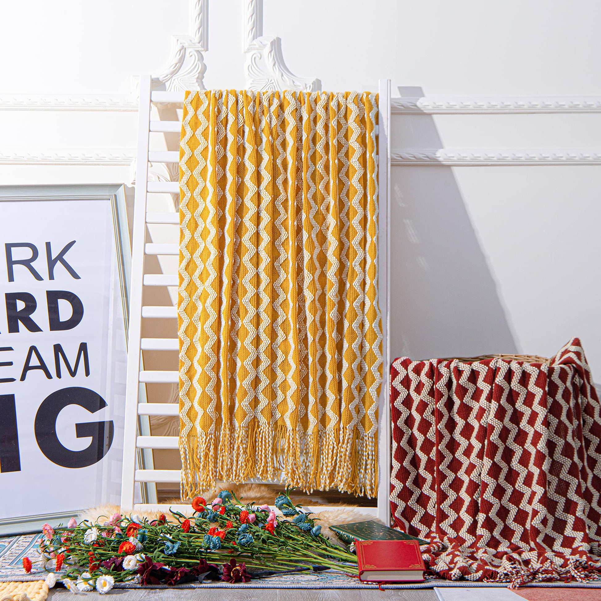 • PRODUCT FEATURES: Our comfortable blankets are made of acrylic fabric, which has greater flexibility and strength than wool. This light acrylic blanket is ultra-soft, fluffy and strong resistance to sunlight. This knitted blanket with special tassel design on both sides adds to the beauty of the product.