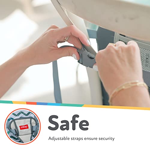 Details: The Nuby Easy Go Booster Seat is a lightweight, compact, and portable booster seat designed with safety, convenience, and comfort in mind. This Nuby booster seat features adjustable safety straps, a three-point harness to ensure your little one is safe and secure, and removable foam padding for your child's comfort. This portable baby chair easily collapses, making the small booster seat perfect for travel, and features an easy-access pocket for added convenience and extra storage. Plus, this infant seat's durable and low-maintenance fabric easily wipes clean and is water- and stain-resistant. The Easy Go Booster Seat is for use on adult chairs with minimum dimensions of: H 16.5 in. x W 12.6 in. x D 10.3 in. Go Easy with Easy Go!