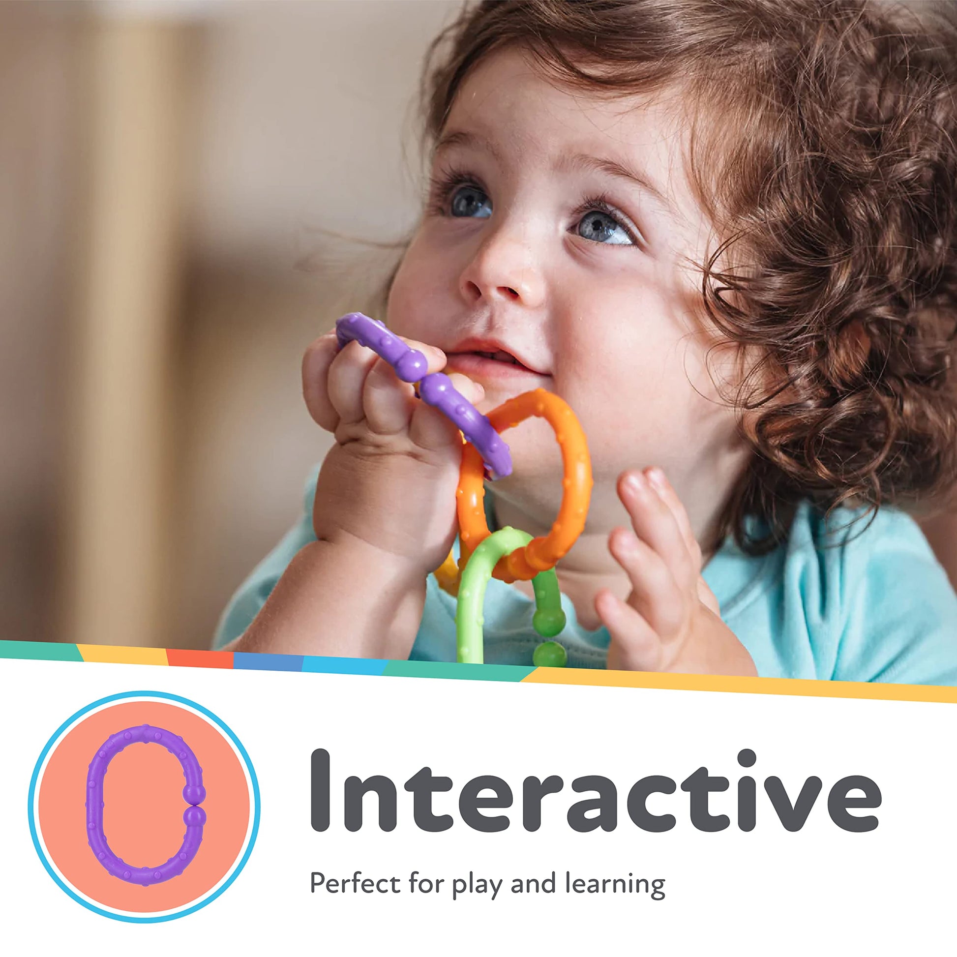 • SENSORY TOYS FOR BABIES: Made with engaging primary colors, Linkables help stimulate your child's senses with built-in texture and variance in tactile sensations