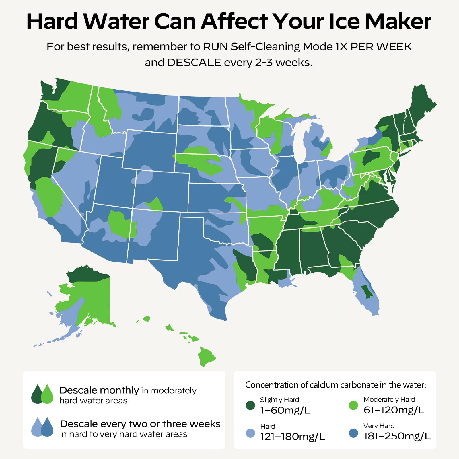 • SELF-CLEANING FUNCTION - The countertop ice maker has a removable cover that makes it easy to reach every nook and cranny for deep cleaning. The ice maker also features an automatic self-cleaning cycle that can be activated by pressing and holding the ICE/CLEAN button for 5 seconds.