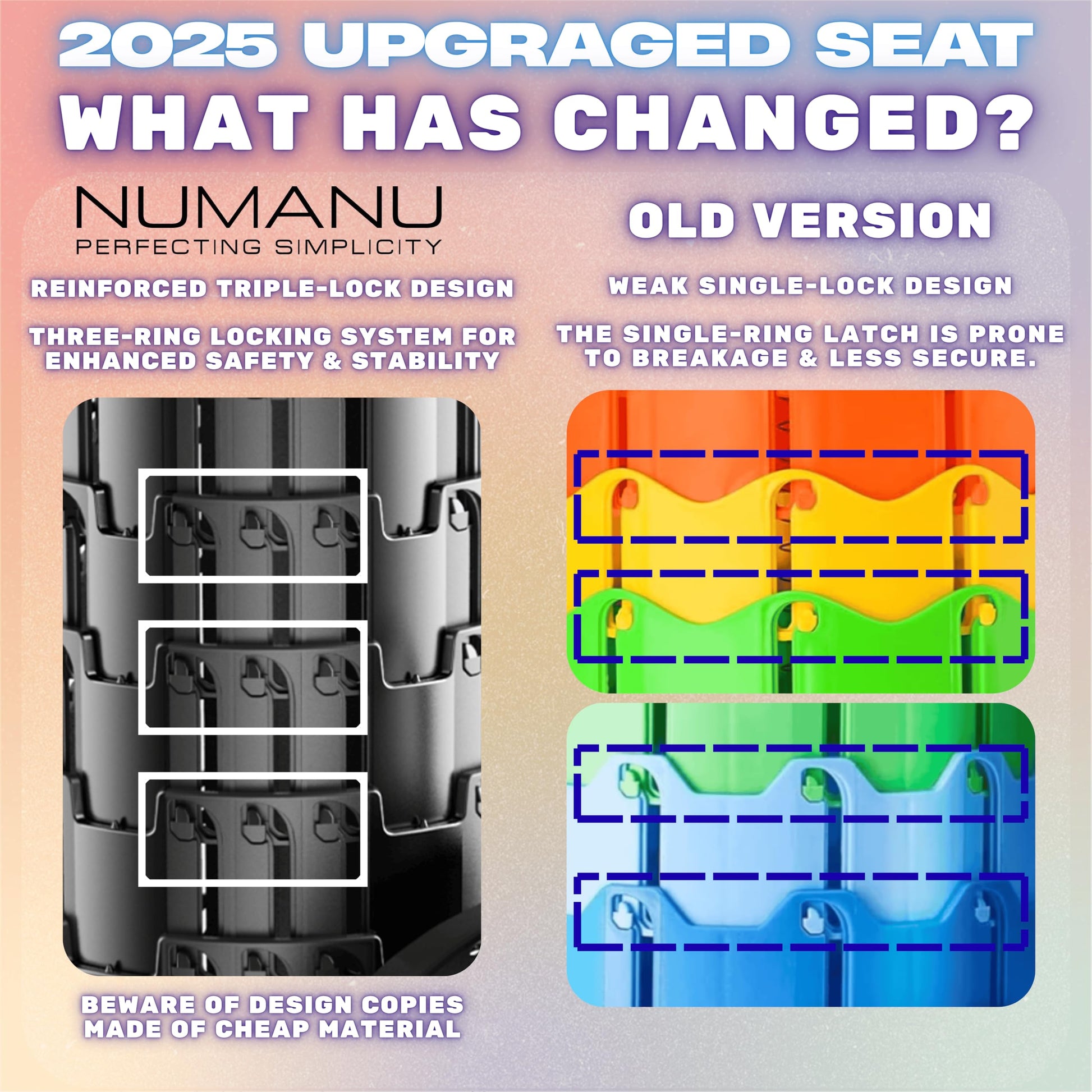 • 🔒【SELF-OPEN PREVENTION LOCK】Most Telescopic Stools cannot properly lock and many times slip out unexpectedly while Collapsed/Closed – Rest assured your NUMANU Telescoping Travel Foldable Chair is always securely locked in place with our open-prevention Safety Lock.