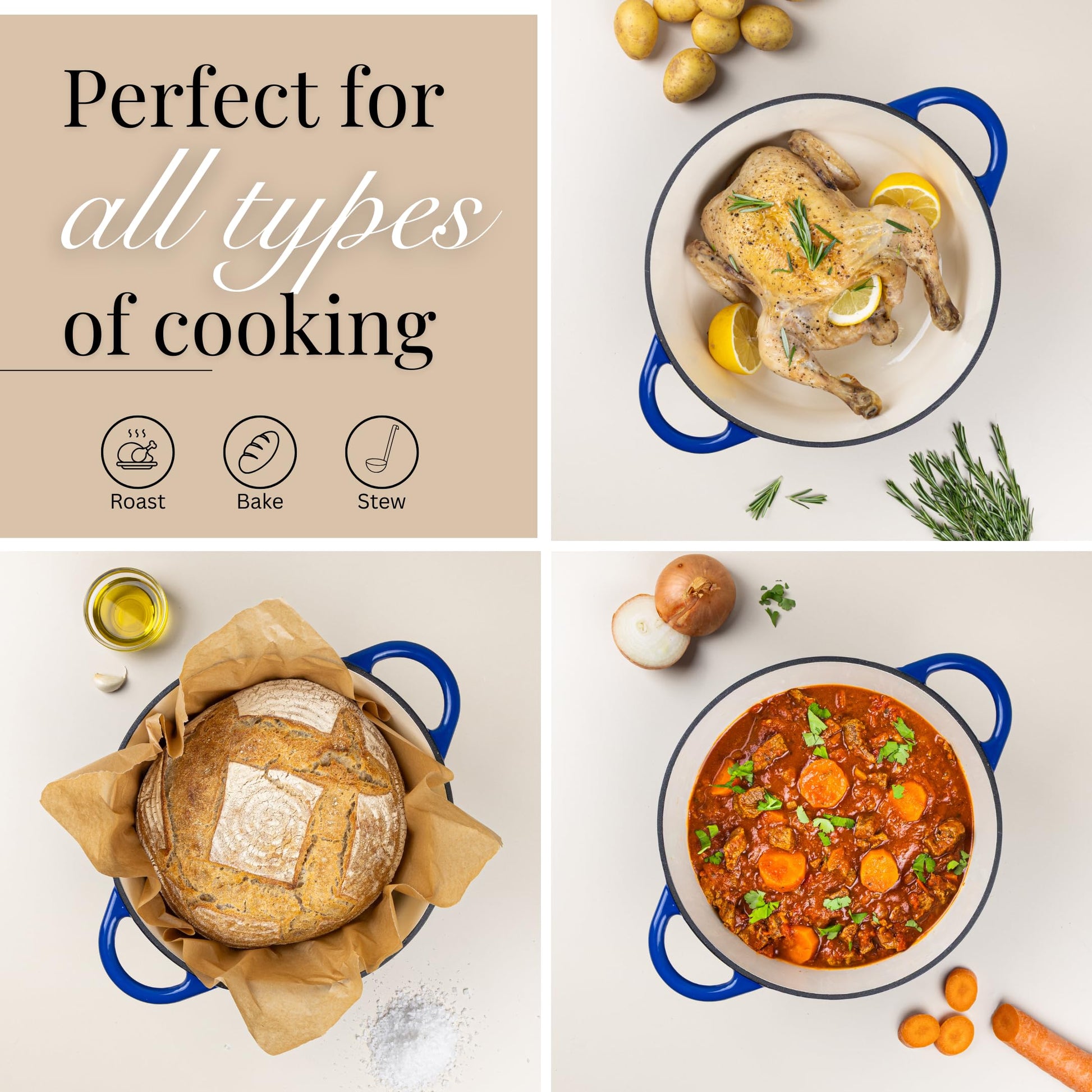 • THOUGHTFUL GIFT: present our gorgeous cast iron casserole dish to all your loved ones, for the birthday of a home cook or professional chef, also perfect for housewarmings and weddings!