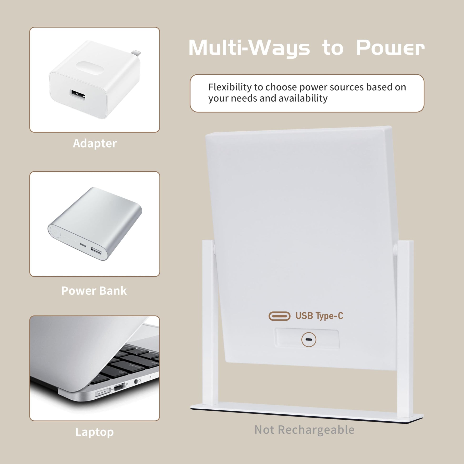 • 【 Detachable 10X Magnifying Mirror 】- Our light up makeup mirror has 10X magnifying mirror to help applying mascara, eyeliner, eyebrow and lipstick, creating flawless and delicate makeup, suitable for the pursuit of exquisite you.This magnification level is perfect friendly for makeup novice.
