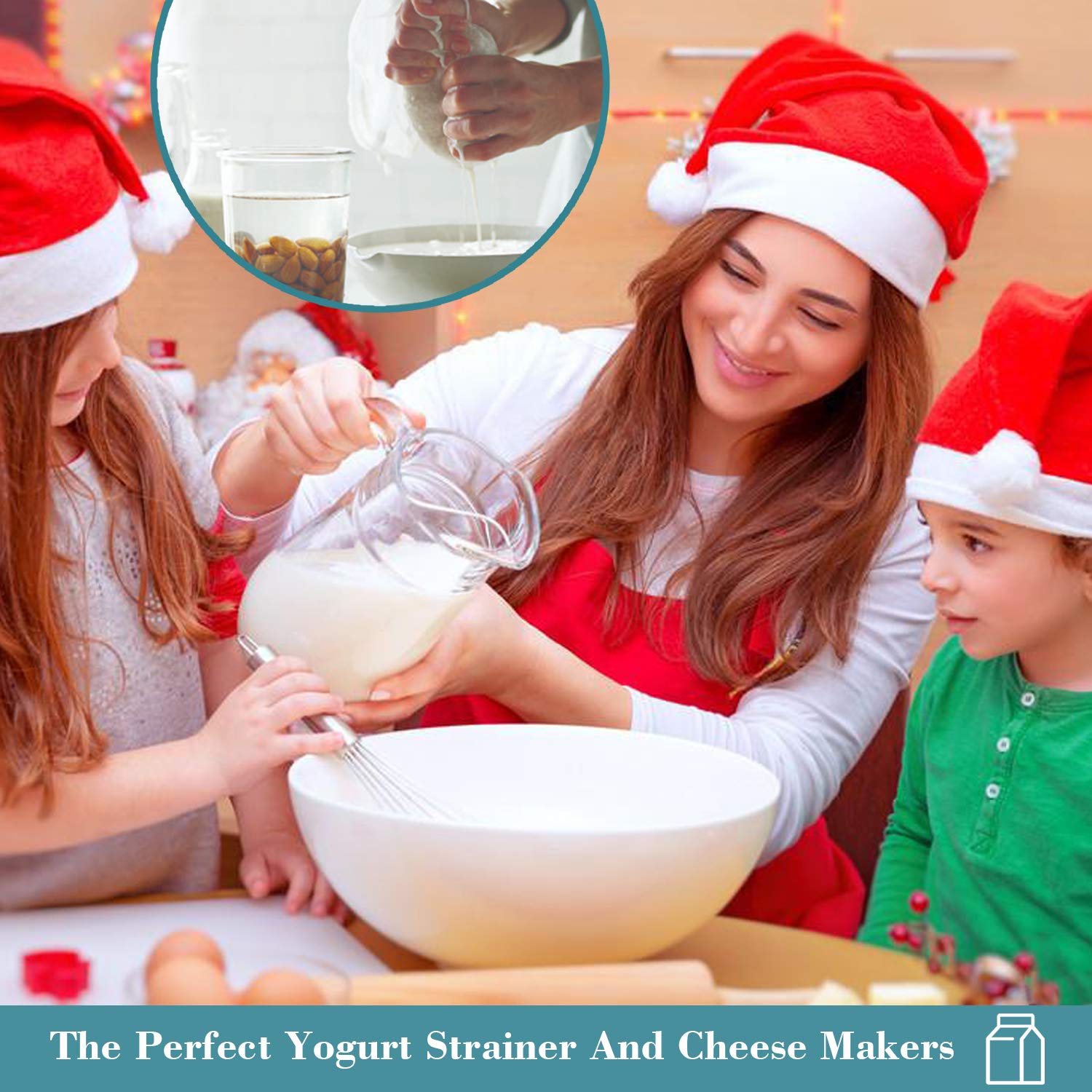 • ⭐【Multiple Uses】This nut milk bag is a multi-function kitchen tool with dozens of uses. It can be used as all purpose strainer, a general filter for blender, homemade juicer/yogurt maker/cheese maker. It can be perfect used for making nutritious and yummy creamy nut/almond/coconut/cashew/unicorn/soy milk, fermented plant-based yogurt, Greek yogurt, nut cheese, broth/fruit/vegetable/celery juice, cold brew coffeedrinks, beer, ghee, kefir, tea, kombucha, chocolate creations, baby food etc.