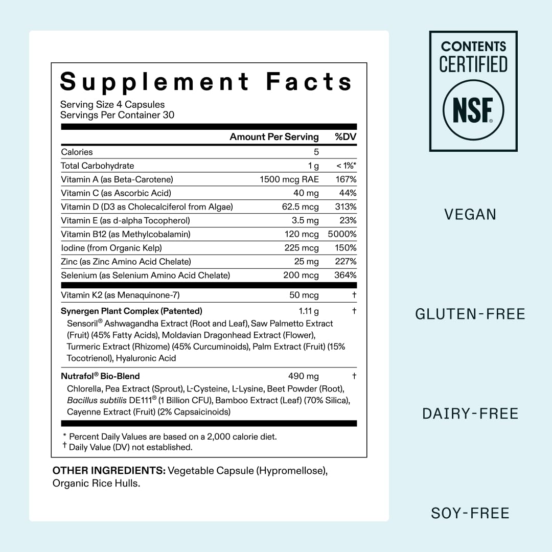 • FOR WOMEN AGES 18-44: Physician-formulated vegan hair supplement that improves hair growth for women with plant-based lifestyles by targeting 6 root causes of hair thinning and shedding, including stress, nutritional gaps and gut health