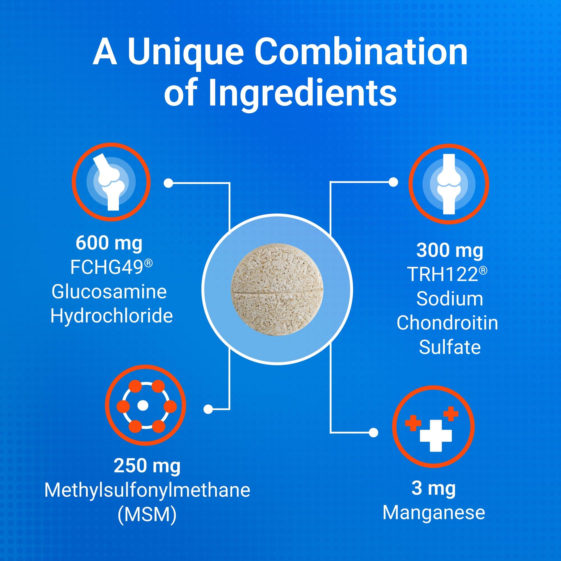 • Contains Glucosamine for Dogs - Cosequin contains glucosamine hydrochloride (FCHG49) and sodium chondroitin sulfate (TRH122), plus methylsulfonylmethane (MSM). This unique combination of ingredients supports healthy joints.