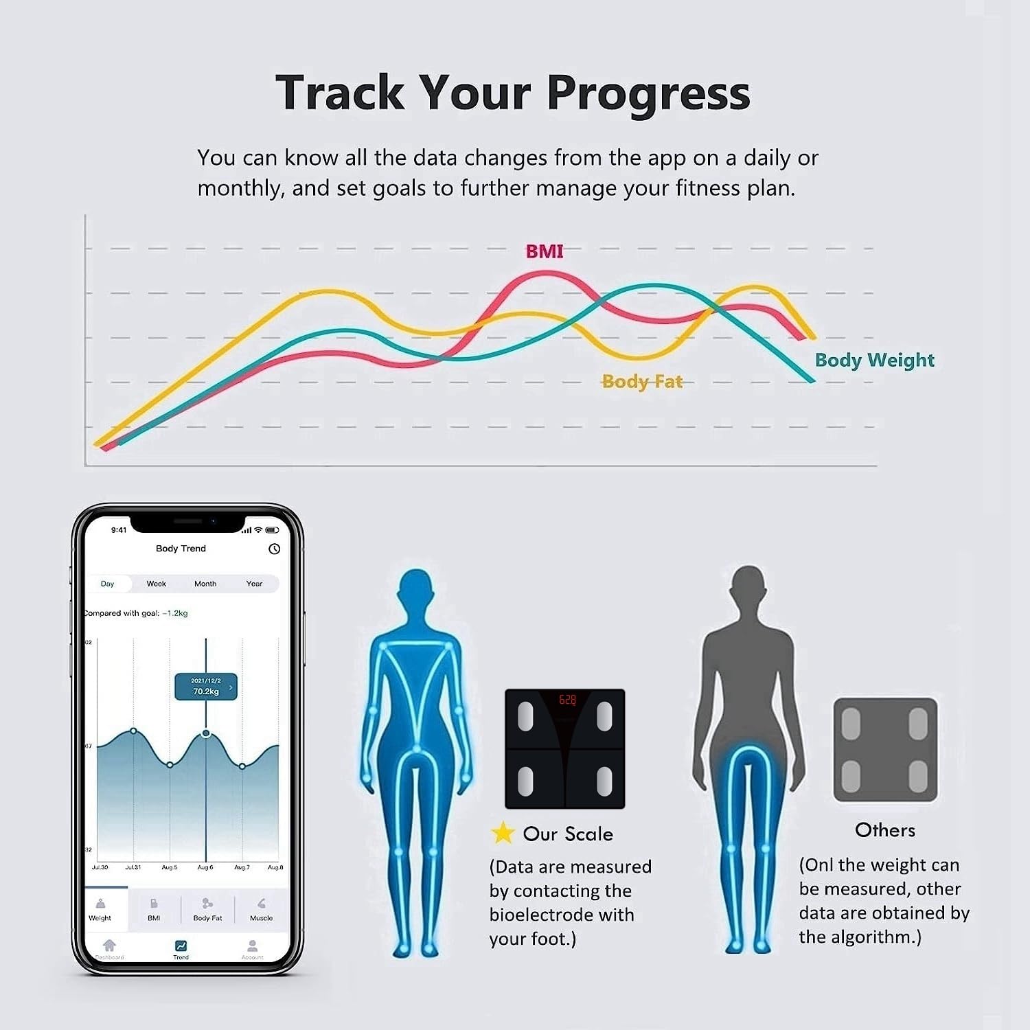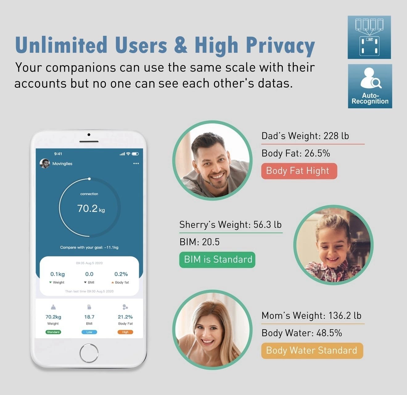 • 【User-friendly App with Baby Mode】MovingLife APP allows you to set a goal, monitor your fitness trends with an automatic chart, track your historical data for comparison. Easily deduct yout weight from you while you hold your baby on hand for getting the baby's weight.