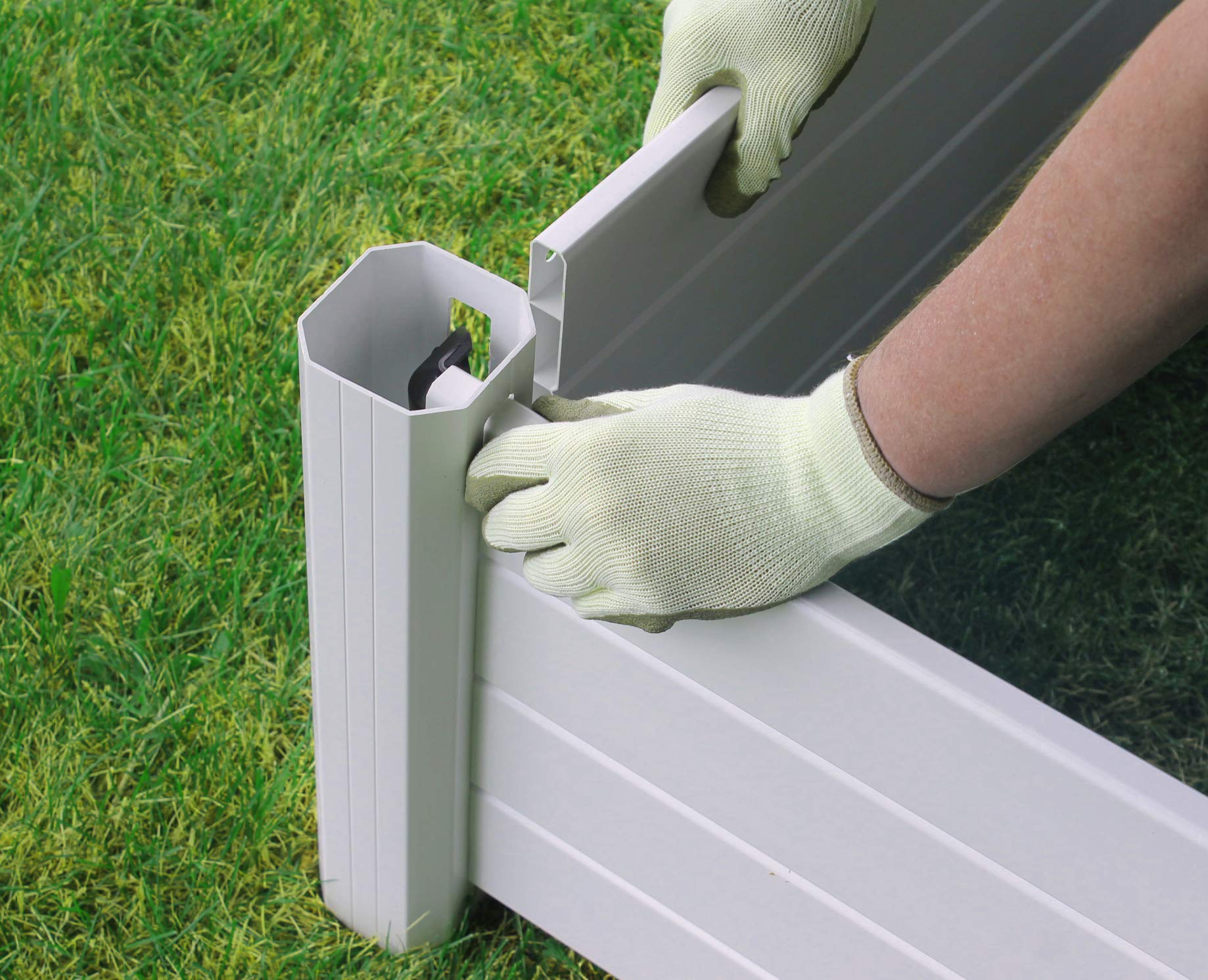 Details: Growing plants and other greenery is a breeze with the NuVue Products 26001 Premium Raised Garden Bed. This elevated planter box makes it easy to add a beautiful, luscious garden to any patio, backyard, front porch, sunroom, or other outdoor space of your home. The BPA-free garden bed is certified safe for growing edible plants, making it ideal for growing herbs, salad greens, berries, vegetables, succulents, flowers, and much more. Constructed from heavy-duty, UV-resistant white polymer with a woodgrain panel texture, this maintenance-free garden planter is as durable as it is attractive and will not rust, rot, or mold. Set-up or take-down is a breeze with NuVue’s unique Quick-Connect system which allows for a quick and easy assembly with no tools required. Measuring 48” L x 48” W x 15” H, this outdoor plant box offers ample space to grow plants, vegetables, herbs, flowers, or fruits, and the tall wall height reduces the amount of bending and back strain required to maintain your garden's beauty.