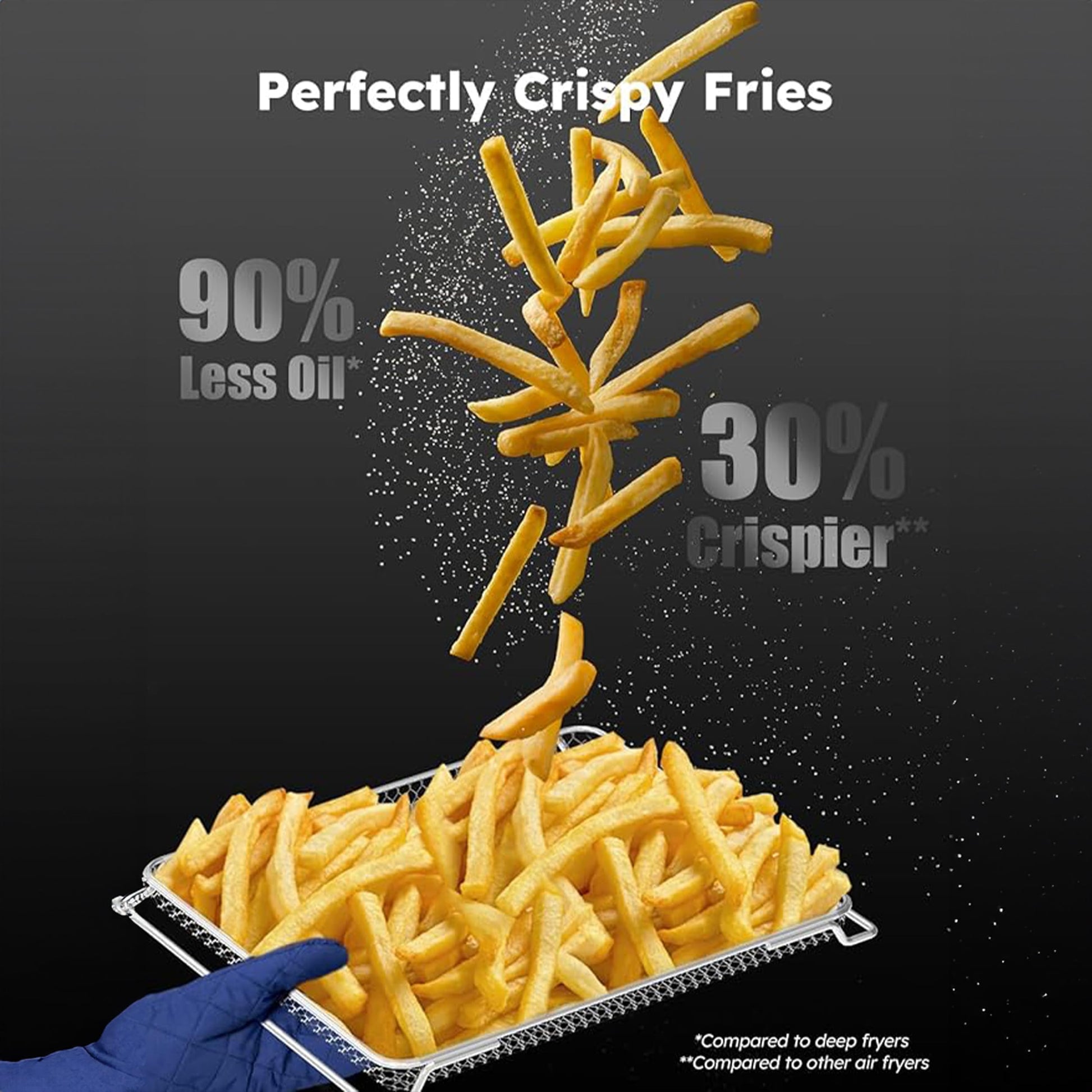 • 10 PRE-PROGRAMMED PRESETS - Bravo is programmed with 10 preset cooking functions for air frying, grilling, baking, broiling, roasting, dehydrating, reheating, toasting & more. Simply select the right preset function and let Bravo do the rest.