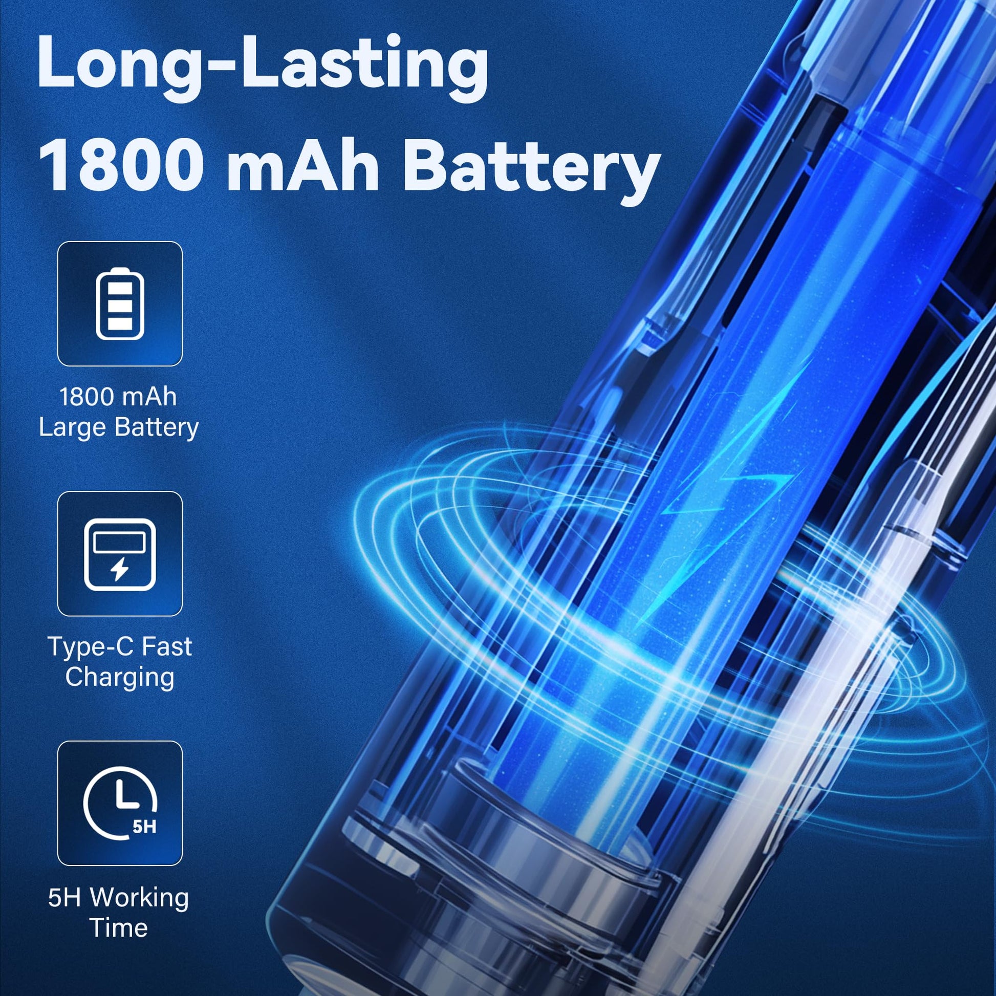 • ⚡ 1800mAh Rechargeable Battery - Enjoy longer use with the 1800mAh rechargeable battery and fast Type-C charging. The display on the handle clearly shows the battery level for easy monitoring. Plus, it’s an eco-friendly choice—no more disposable batteries required.