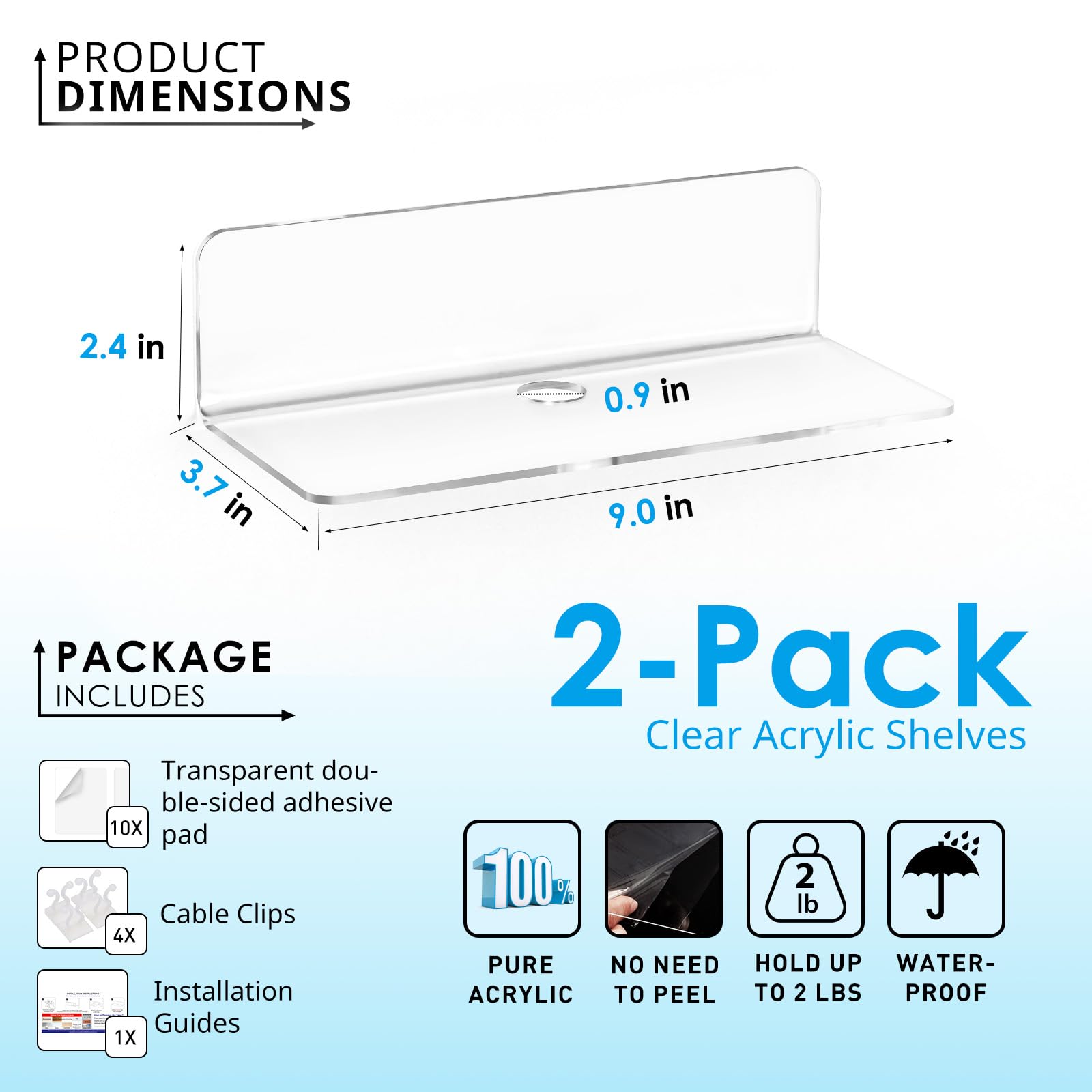 • SAVE SPACE & NEATER: Contains 2 clear acrylic floating shelves, providing multi-layer storage space, allowing you to use wall space more efficiently, and conveniently store everything while keeping your room organized.