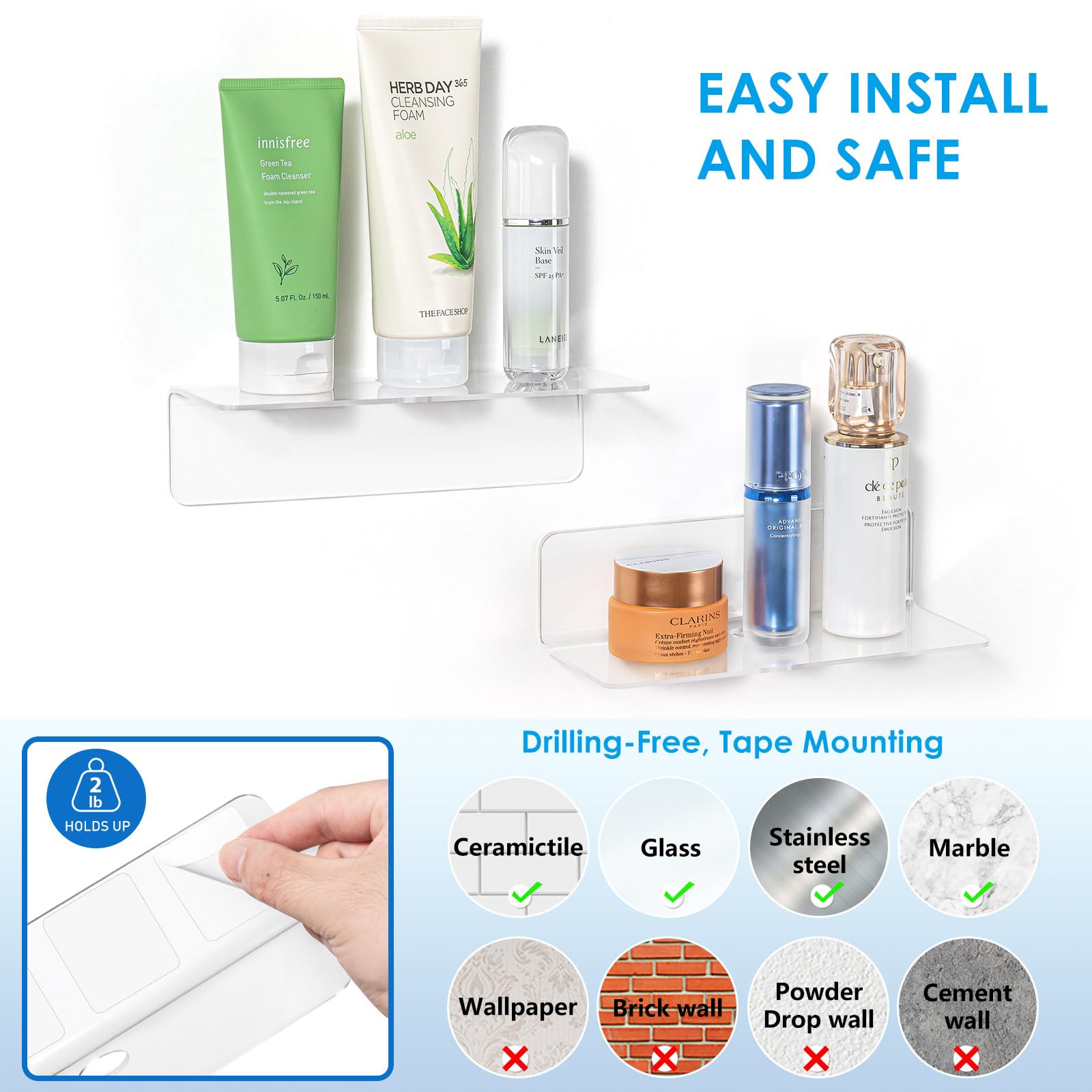 OAPRIRE Clear Acrylic Floating Shelves Set of 2 - Easily Expand Wall Space - Small Wall Shelf with Strong Adhesive for Bathroom, Bedroom, etc