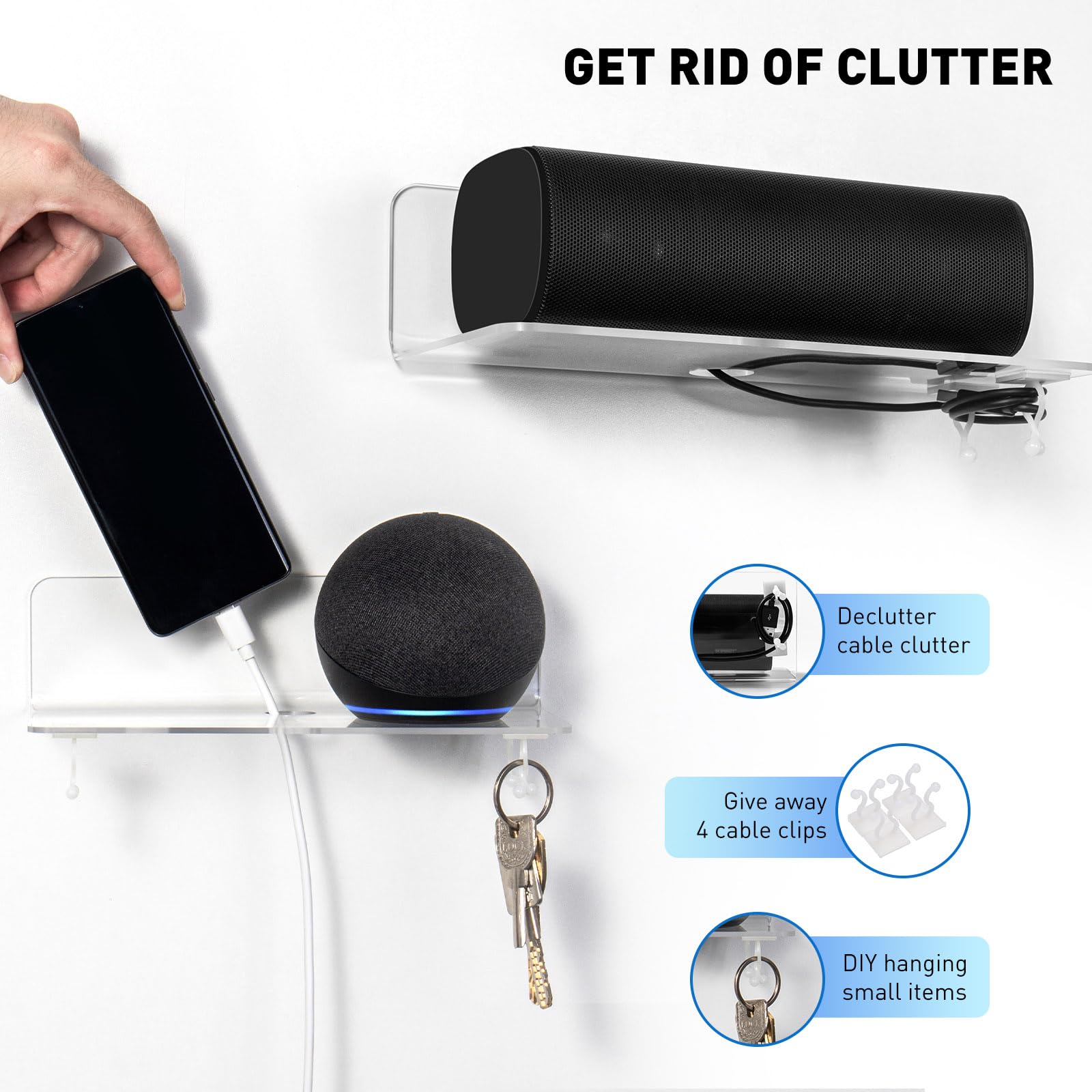 • DURABLE & STRONG: The clear acrylic shelves are made of high-quality acrylic, exquisite workmanship, durable and strong enough to hold up to 2 pounds. Convenient and non-damaging storage for items such as cosmetics, smart speakers, baby monitors, action figures, and more.