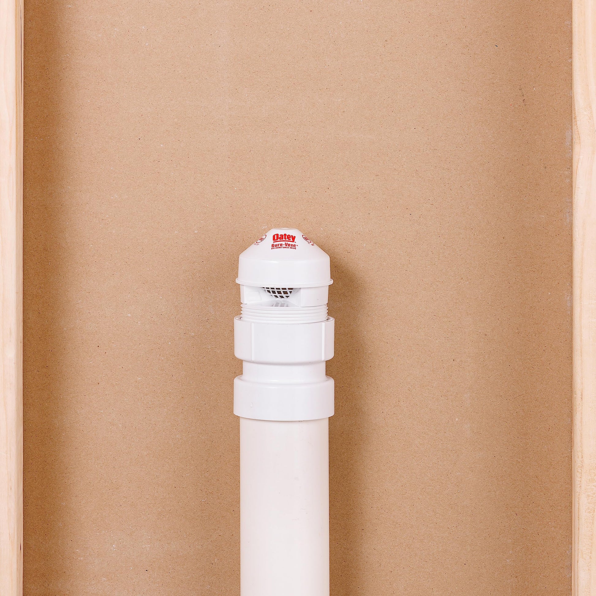 Eliminate the need for a branch vent with the Oatey Sure-Vent Air Admittance Valve. This air admittance valve (AAV) provides the ideal venting solution for island sinks, remote bathroom groups, and remodel jobs by eliminating the need to be connected directly into the stack vent. This AAV keeps the sewer and atmospheric pressures equalized, allowing water to drain freely. Its one-way valve is designed to allow air to enter the plumbing drainage system when negative pressures develop without the use of a vent extended to open air and to prevent sewer gases from escaping into the building. The Oatey Sure-Vent AAV is sensitive to pressure changes to consistently open and close as needed by the plumbing system, closing by gravity and sealing the vent terminal at zero differential pressure (no flow conditions) and under positive internal pressures. This 1.5" x 2" PVC air admittance valve is approved to handle up to 3" vent pipe and has a 20 DFU (Drainage Fixture Unit) capacity. It complies to ASSE (American Society of Safety Engineers) Standard 1050 and 1051 for use a secondary vent. Since 1916, Oatey has provided reliable, high-quality products for the residential and commercial plumbing industries, with a commitment to delivering quality, building trust and improving lives. Today, Oatey operates a comprehensive manufacturing and distribution network to supply thousands of products for professional builders, contractors, engineers and do-it-yourself consumers around the world.
