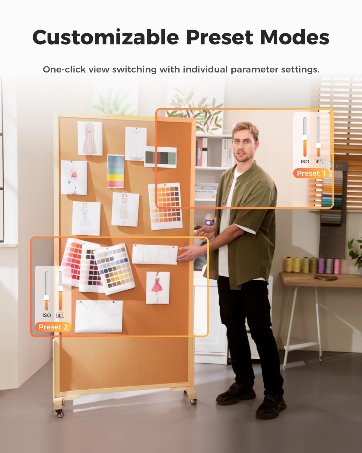 • 【Customizable Preset Modes】The webcam for PC newly upgraded Preset Position function not only can set multiple preset positions, but also customizes separate parameters and AI tracking modes for each preset position. Even when the scene switches, it reduces adjustment time while still ensuring that every frame is shot at the optimal setting.