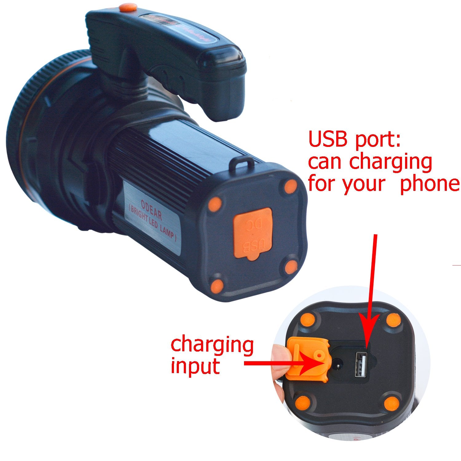 ODEAR Super Bright Torch Searchlight Handheld Portable LED Spotlight USB Rechargeable Flashlight for Mining,Camping, Hiking, Fishing