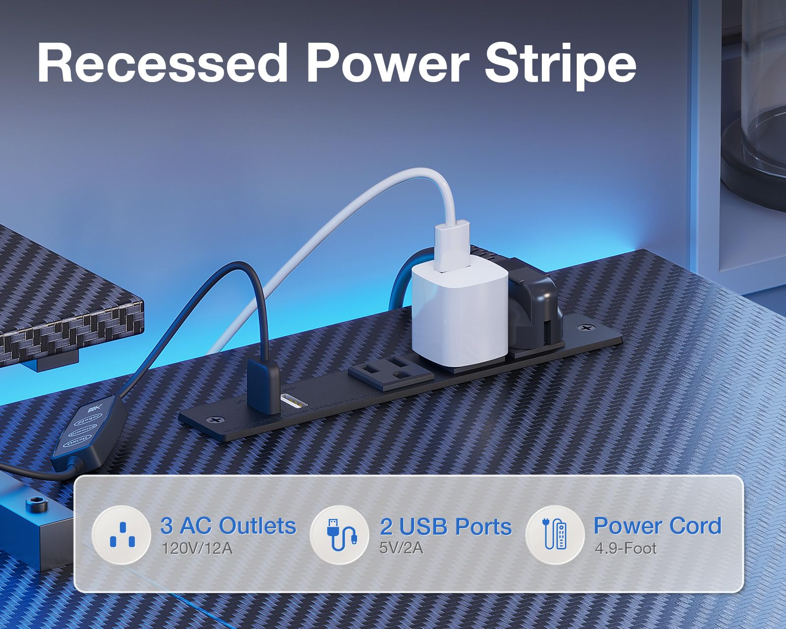 • 【USB Charging Ports & Power Outlets】The office desk is equipped with 3 power outlets and 2 USB charging ports for your electronic devices, you can easily and conveniently charge your smart phone, gaming gear or Bluetooth devices when play computer games or work from home. A versatile hook provides additional storage space for your convenience.