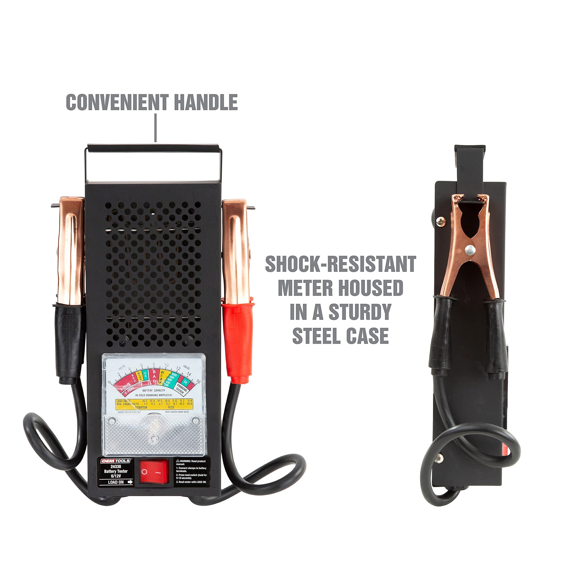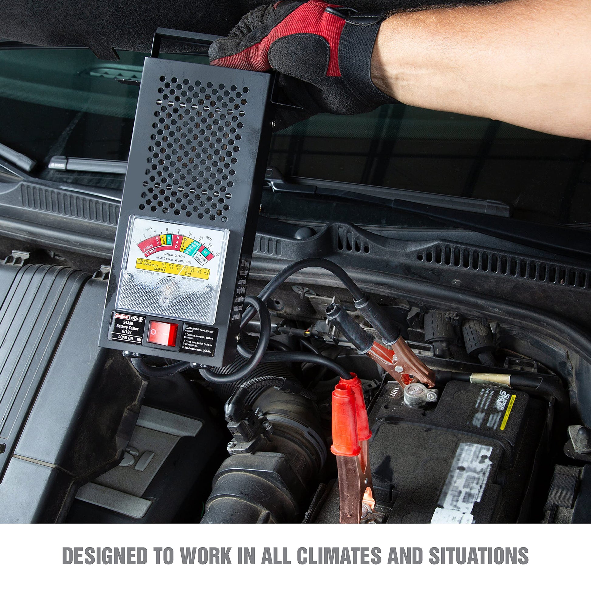 OEMTOOLS 24338 Battery Load Tester, Battery Tester 12V Automotive, Easy-to-Read Car Battery Tester, Heavy Duty Clamps, Shock Resistant Meter, Housed in Sturdy Steel Case