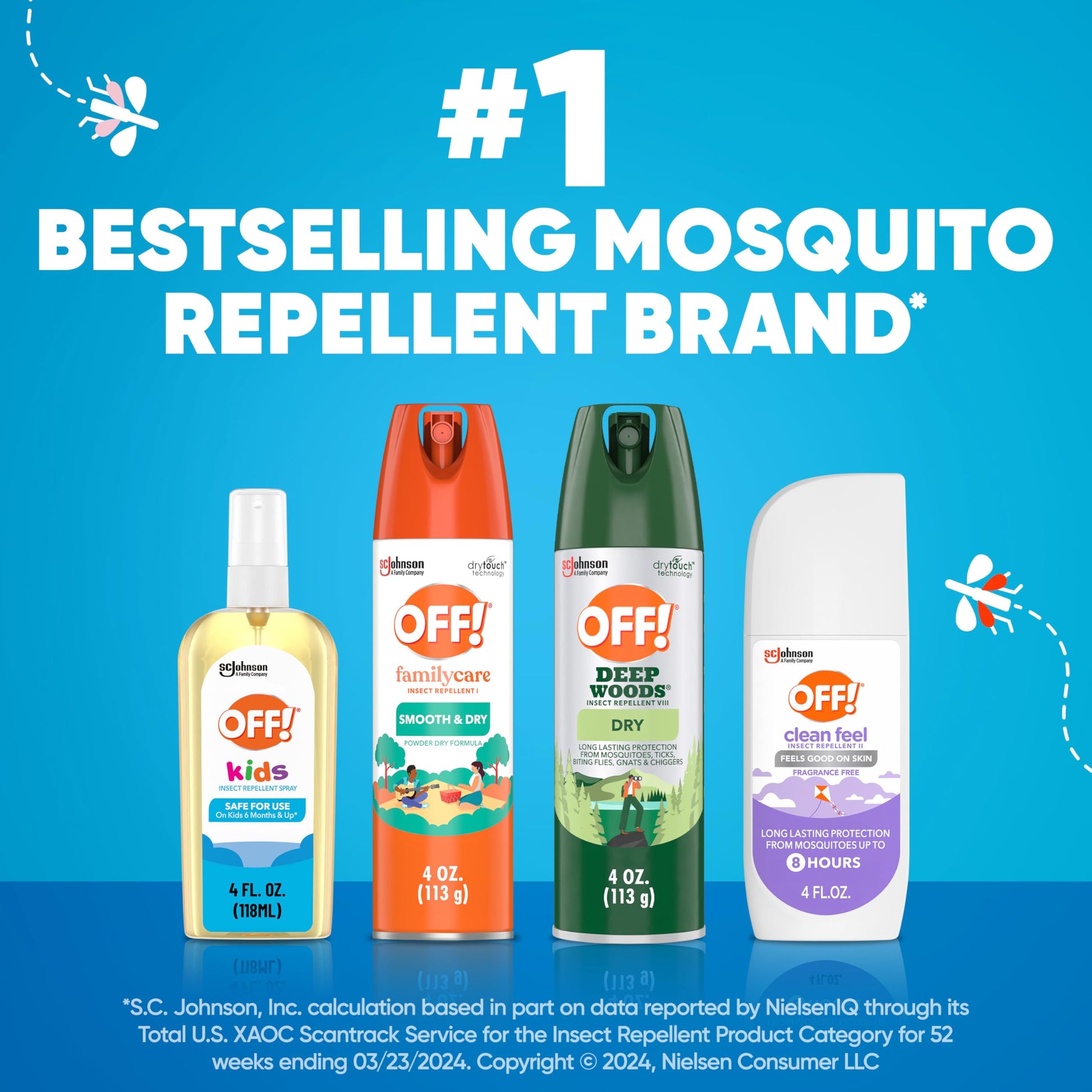 OFF! Kids Mosquito Spray is safe for use on kids 6 months and up* (*when used as directed)