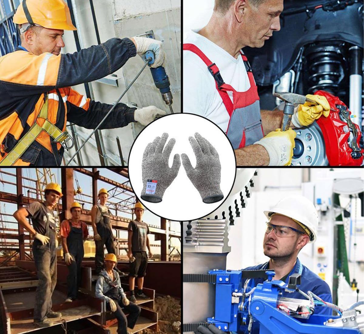 • 🧤Excellent quality - These Cutting Gloves are knitted from 13 gauge nylon with (EN388 certified) level 5 cut protection, which will protect your hands well when you need them, you need these Cut Proof Gloves.