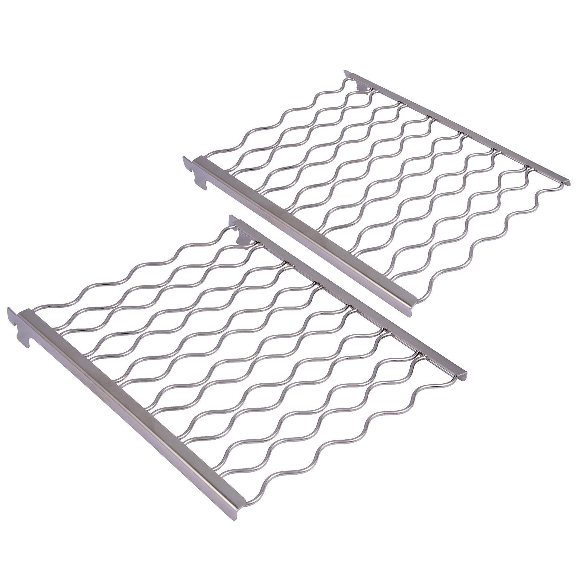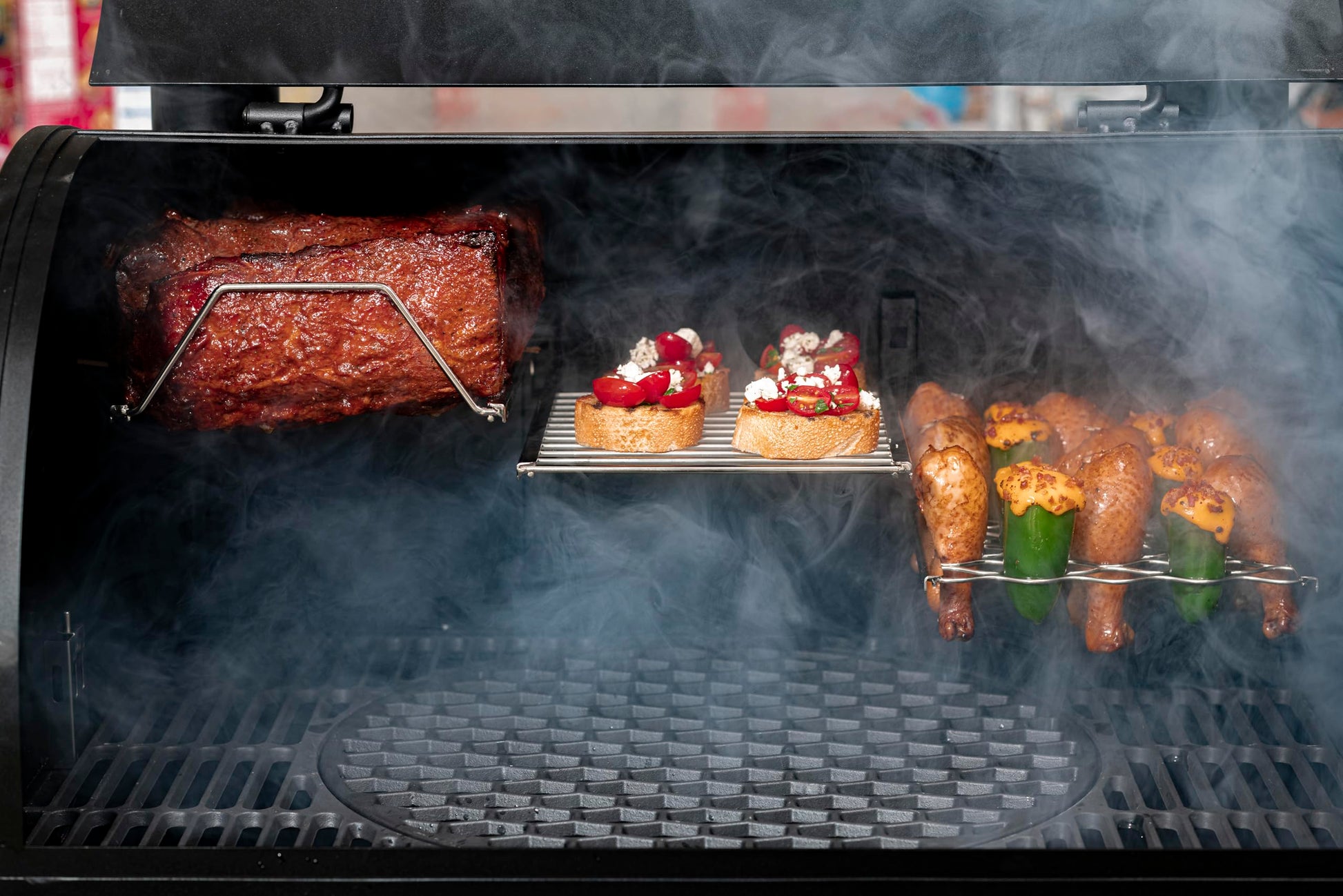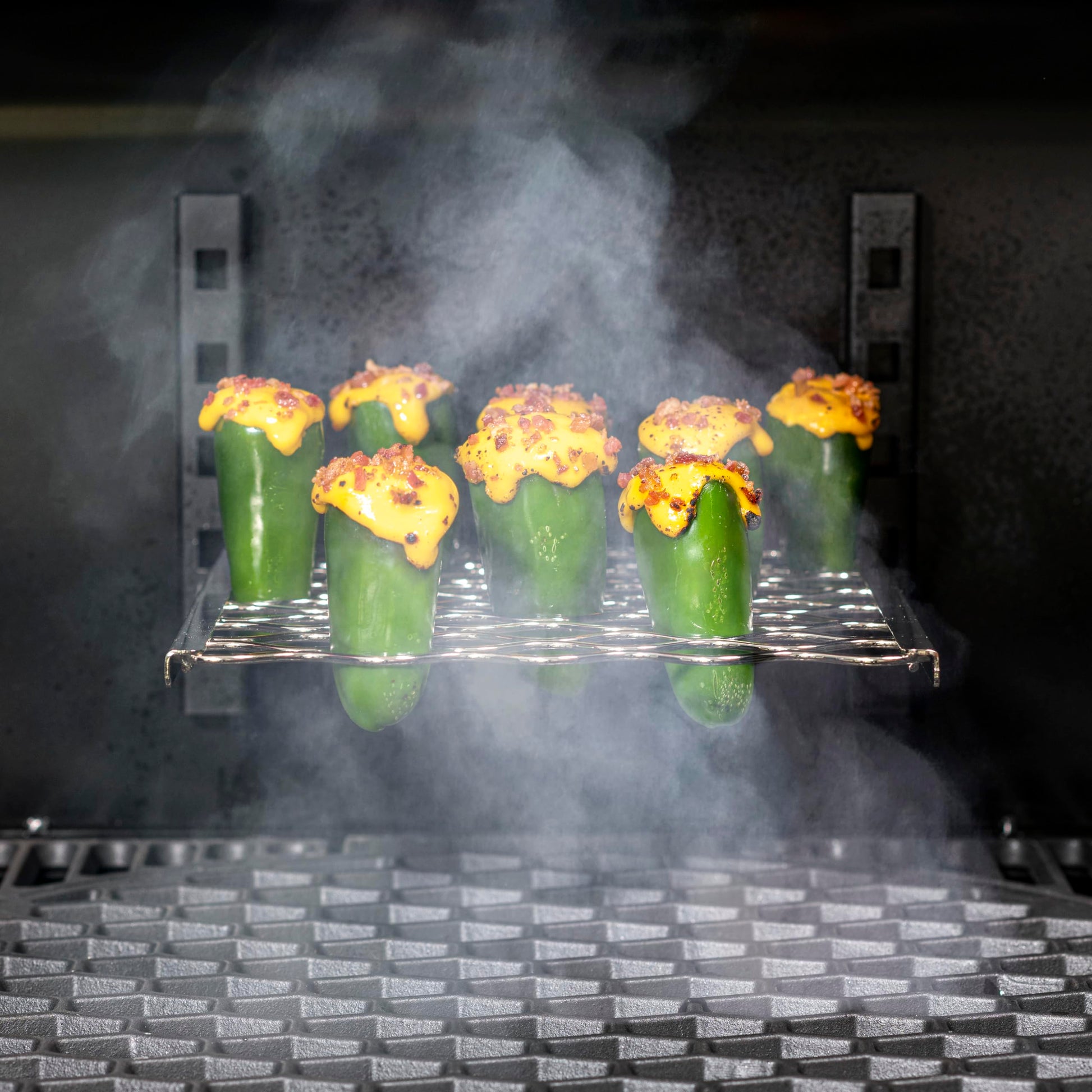 Details: This versatile rack prevents peppers from falling apart, keeps the stuffing in your poppers and cooks drumsticks evenly. It easily locks into the double-slotted brackets on the back wall of the cooking chamber of the Rider Pellet Grills. Get a wide variety of custom configuration options with the Rib Flex Rack and Multi-Purpose Flex Rack (additional racks sold separately) for a truly personalized smoking experience.