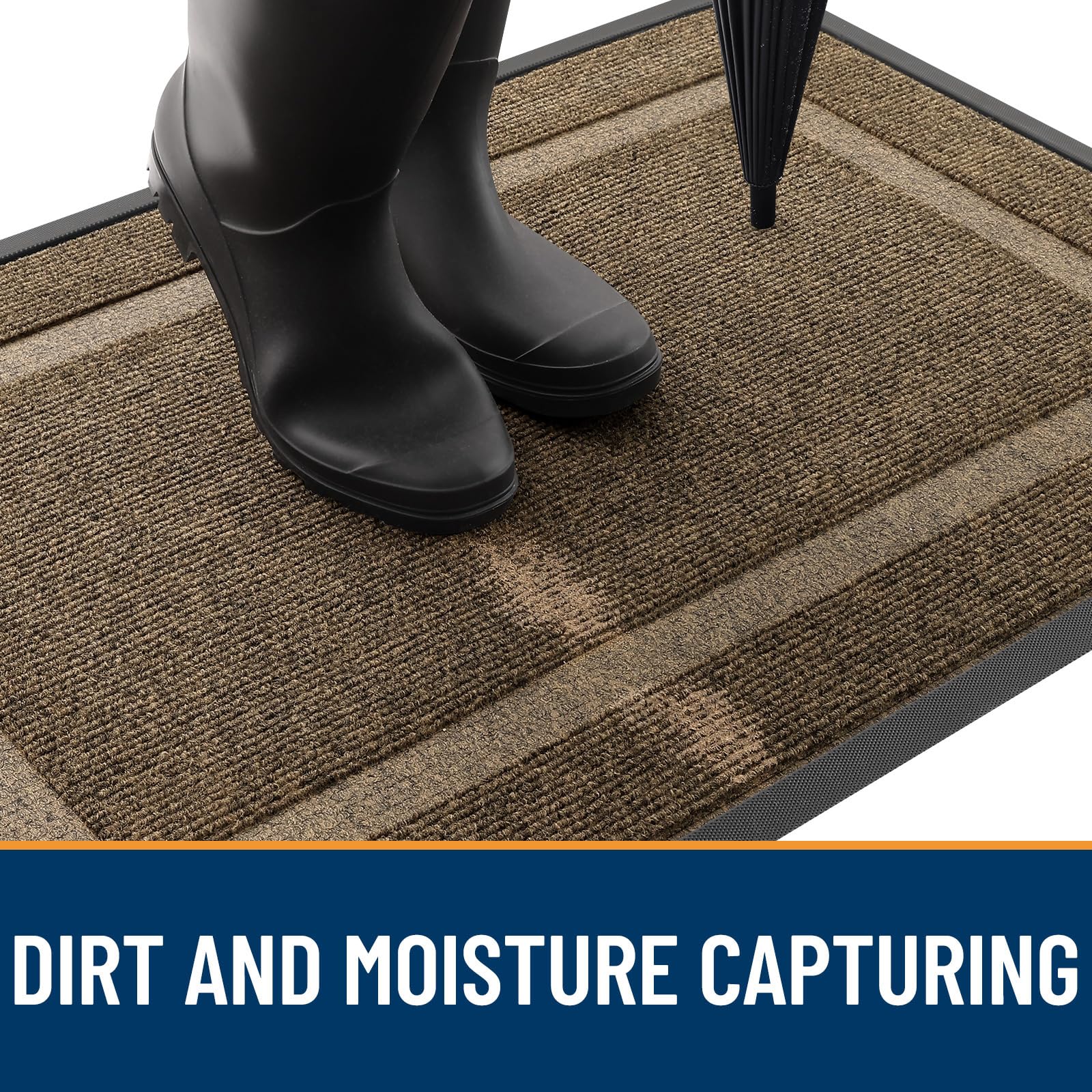 OLANLY Front Door Mat Indoor Outdoor Entrance, Waterproof All-Season, All-Weather Doormat, Sturdy Natural Rubber, Fade Resistant, Low Profile, Easy Clean Patio Porch Entryway Mat, 29.5x17, Brown
