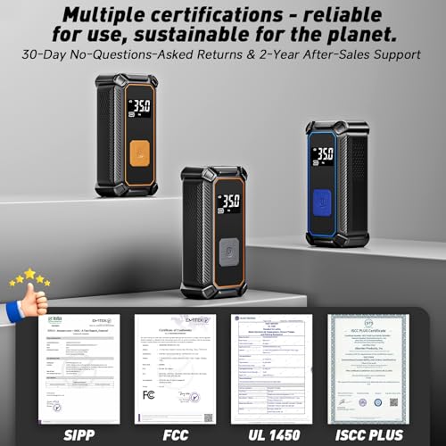 • 【User-Friendly】With four preset modes, operation is straightforward. It's designed for cars, bicycles, motorcycles, and sporting equipment, catering to a variety of inflation needs. Easily switch between PSI, BAR, KPA, and kg/cm² with one button, enhanced by a tire pressure memory feature for streamlined operation