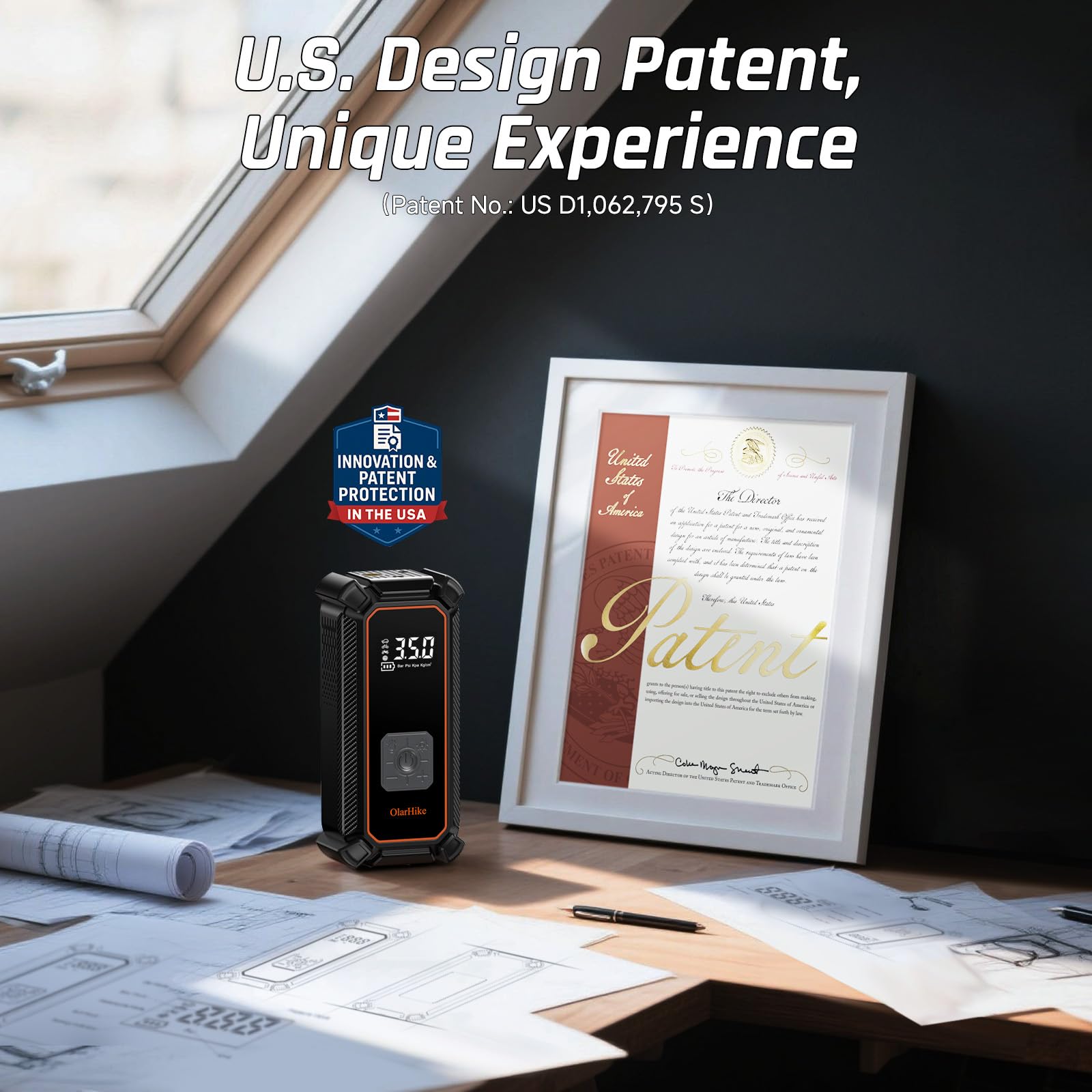 OlarHike Cordless Tire Inflator Portable Air Compressor, 150PSI Dual Power - 5400mAh & 12V DC, Air Pump for Car Tires, Bike, Motorcycle, Bicycle, Electric Pump with LED Light & Digital Pressure Gauge