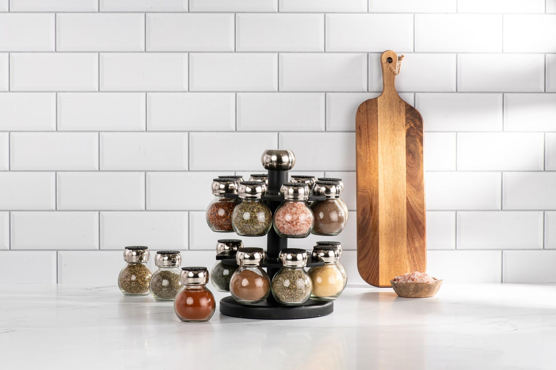 • Space efficient : Fits neatly on any kitchen counter or stores easily in acabinet; orbit spice rack set makes a great gift idea for newhomeowners or newlyweds