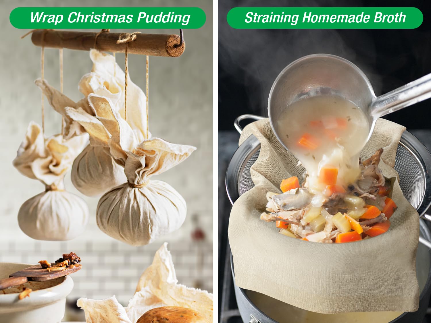• Chemical Free - Stuff poultry, wrap spices, craft customized projects, even use as cheesecloth table runner, all without chemicals. Unbleached Pure Cotton - Strain almond milk, cold brew coffee, juice, and any other foods without worrying.
