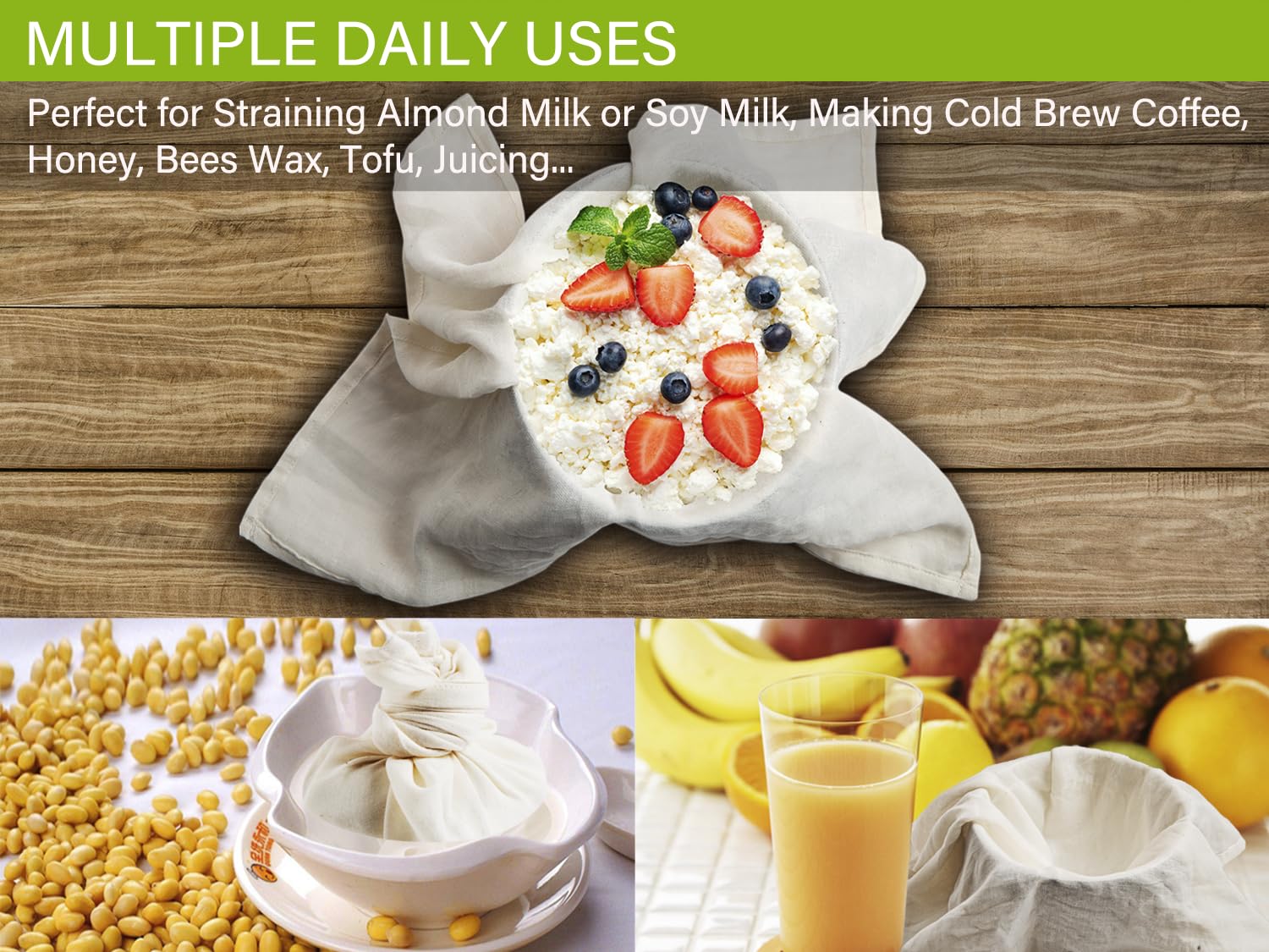 • Chemical Free - Strain broth, baste turkey, make jams and fruit jelly, all without chemicals. Unbleached Pure Cotton - Strain soy milk, cold brew coffee, juice, and any other foods without worrying.
