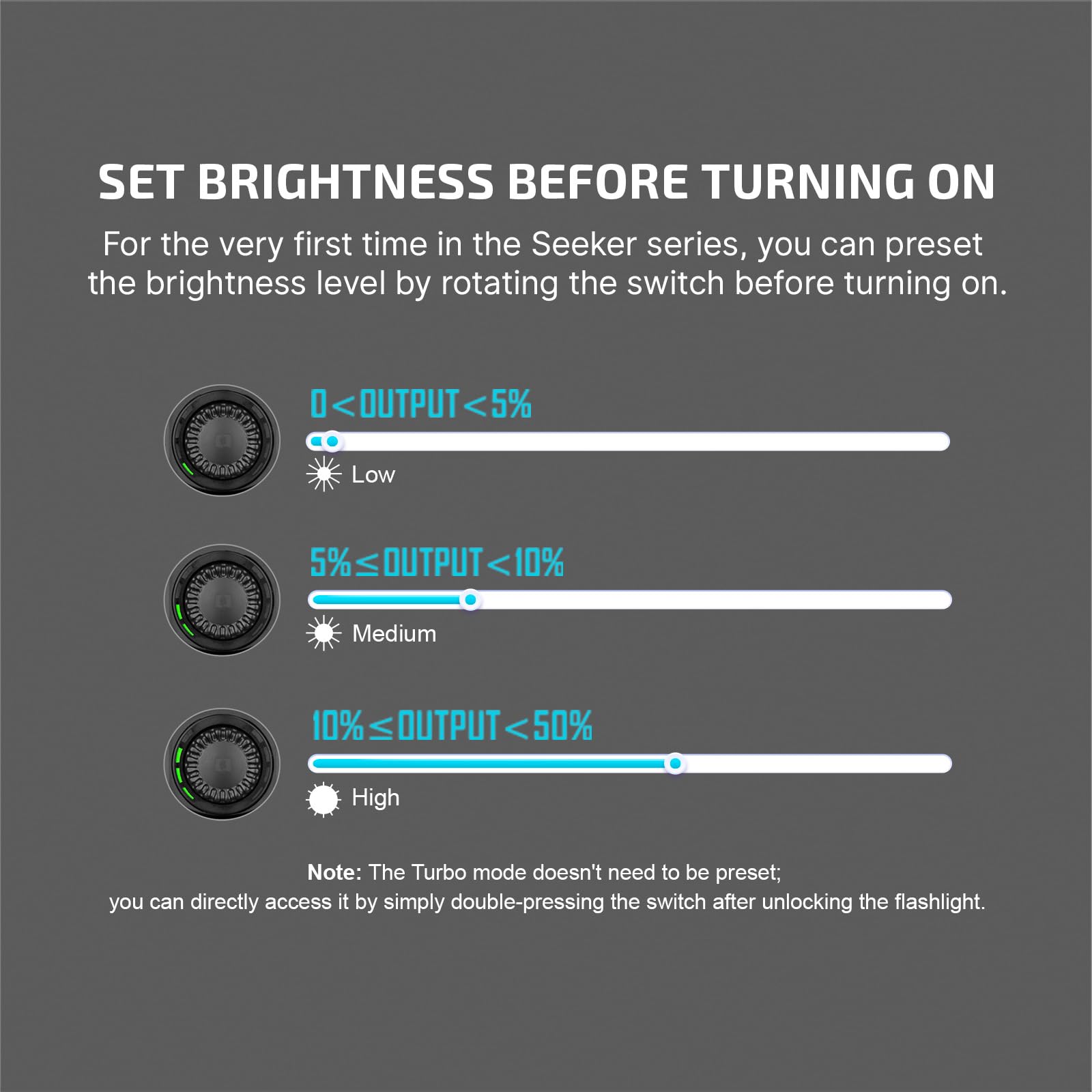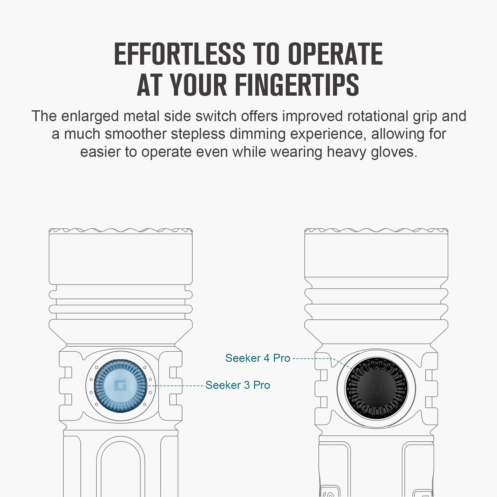 • [High Performance]The super bright flashlight Seeker 4 Pro can reach out max output of 4,600 lumens, and a max throw of 260 meters