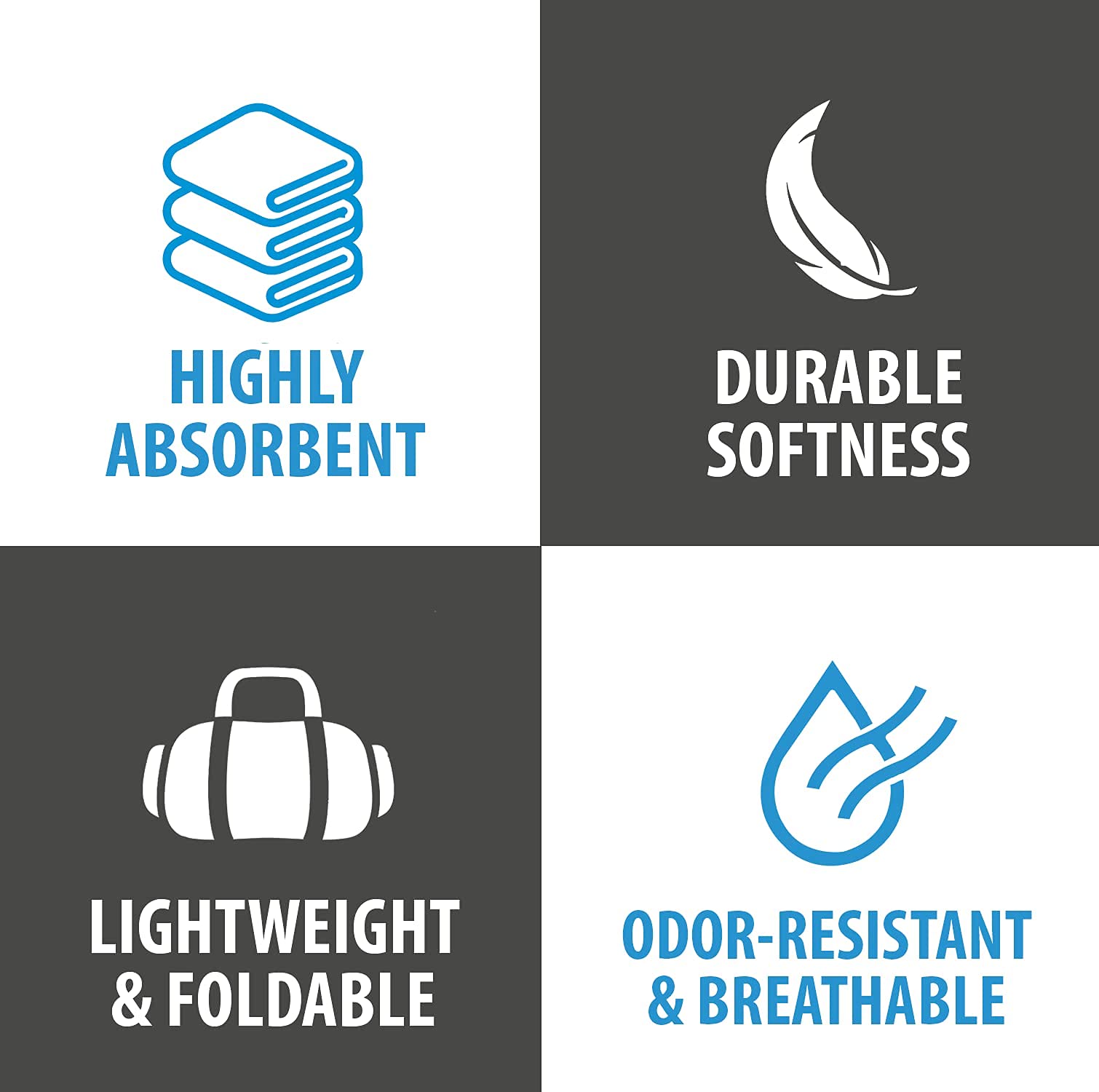 • FAST DRYING - Made with fibers that are much thinner than a standard microfiber towel, our quick dry towels have 4x as much surface area, allowing them to absorb more water and dry up to 3x as fast.
