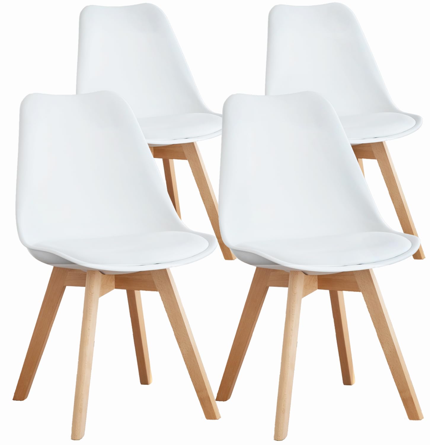 OLIXIS Set of 4 Dining Kitchen Mid-Century Modern Chairs with Wood Legs and PU Leather Cushion for Living Room Bedroom Outdoor Lounge, White