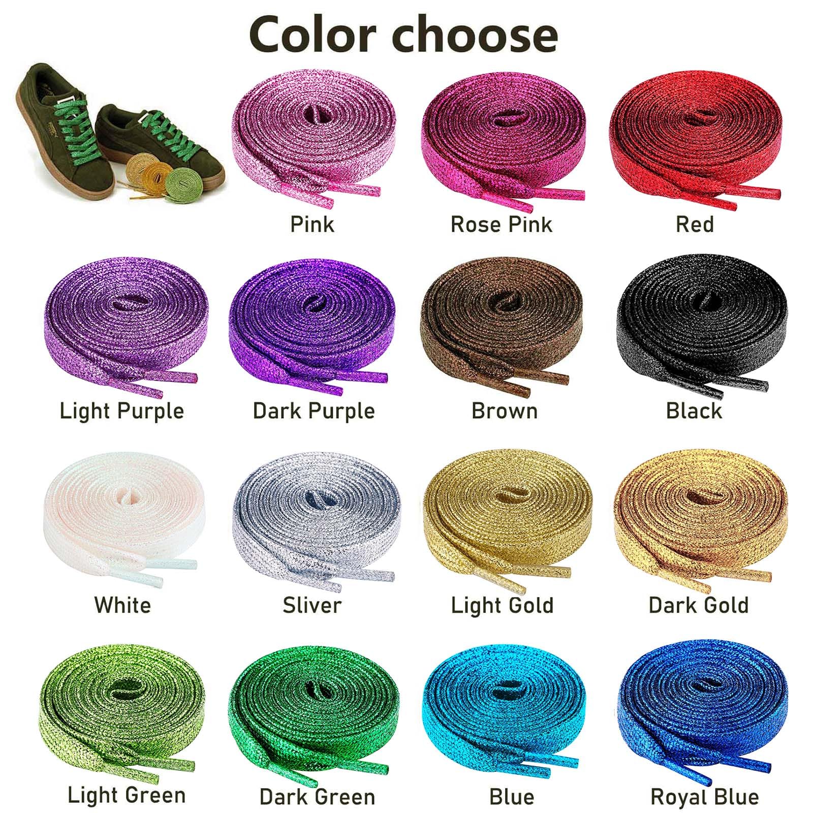 • Perfect Replacement Shoelaces : Glitter flat shoe laces are great for sneakers, athletic shoes, running shoes, tennis shoes, kids shoes, skate shoes, sports shoes, casual shoes, canvas, high tops, boots etc, Shiny shoe laces are perfect for toddle, kids, men, womens sneakers