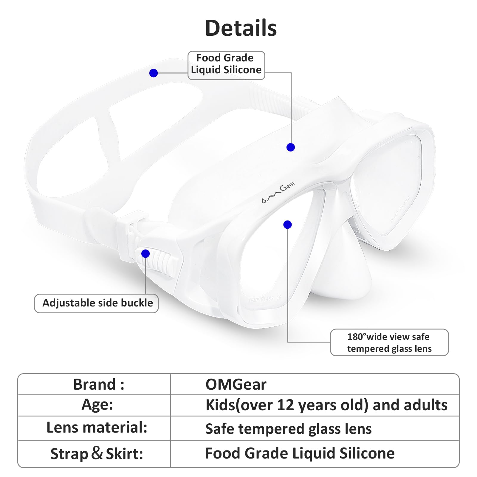 OMGear Swim Goggles with Nose Cover Diving Mask Snorkeling Gear Kids Adult Snorkel Mask for Scuba Free Diving Spearfishing Neoprene Strap Cover Impact Resistance (White)