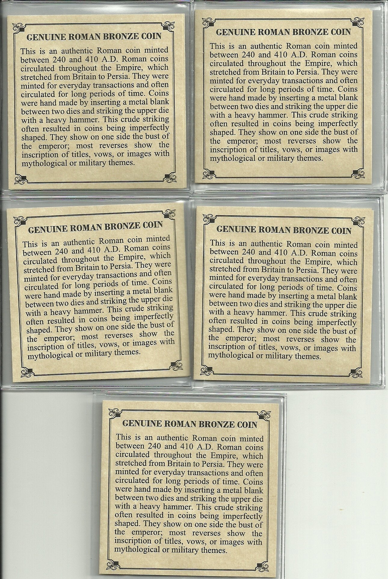 Details: ONE COIN - ANCIENT ROMAN BRONZE COIN. Approximately 1700 years old. Each coin comes with a certificate of authenticity.