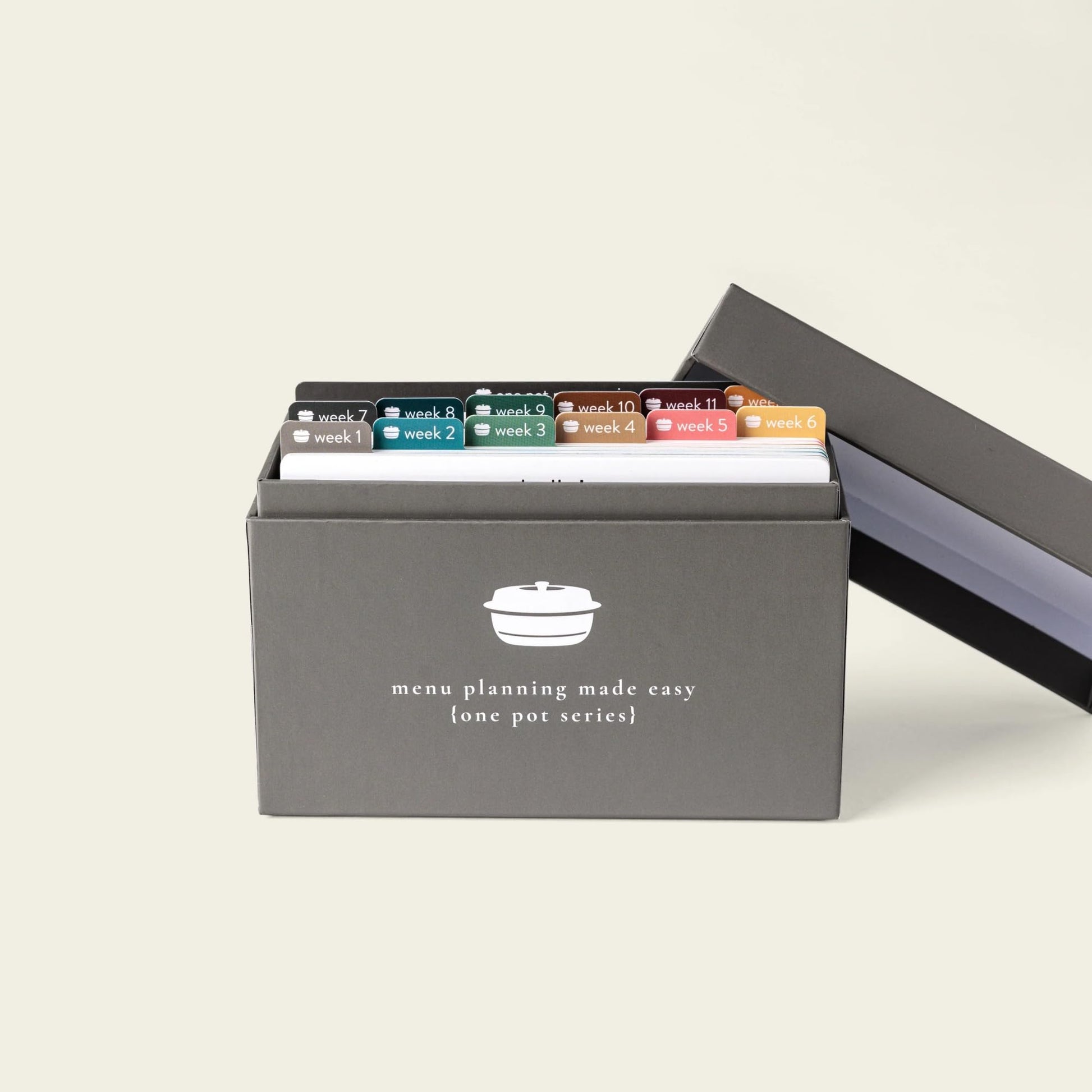 One Pot Meal Planner with 72 Recipe Cards (Photo Edition) - Weekly Menu Plans | Sturdy Recipe Box | 12 Reusable Grocery Shopping Lists | 5 Blank Recipe Cards | Recipe Card Protector | Recipe Ideas