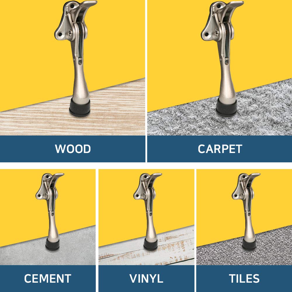 One Touch Kickdown Door Stopper, Door Holder, Heavy Duty Door Stops, Bottom of Door, Height-Adjustable Rubber Tips by HASHI (Satin Nickel 4 inch x 1pack)