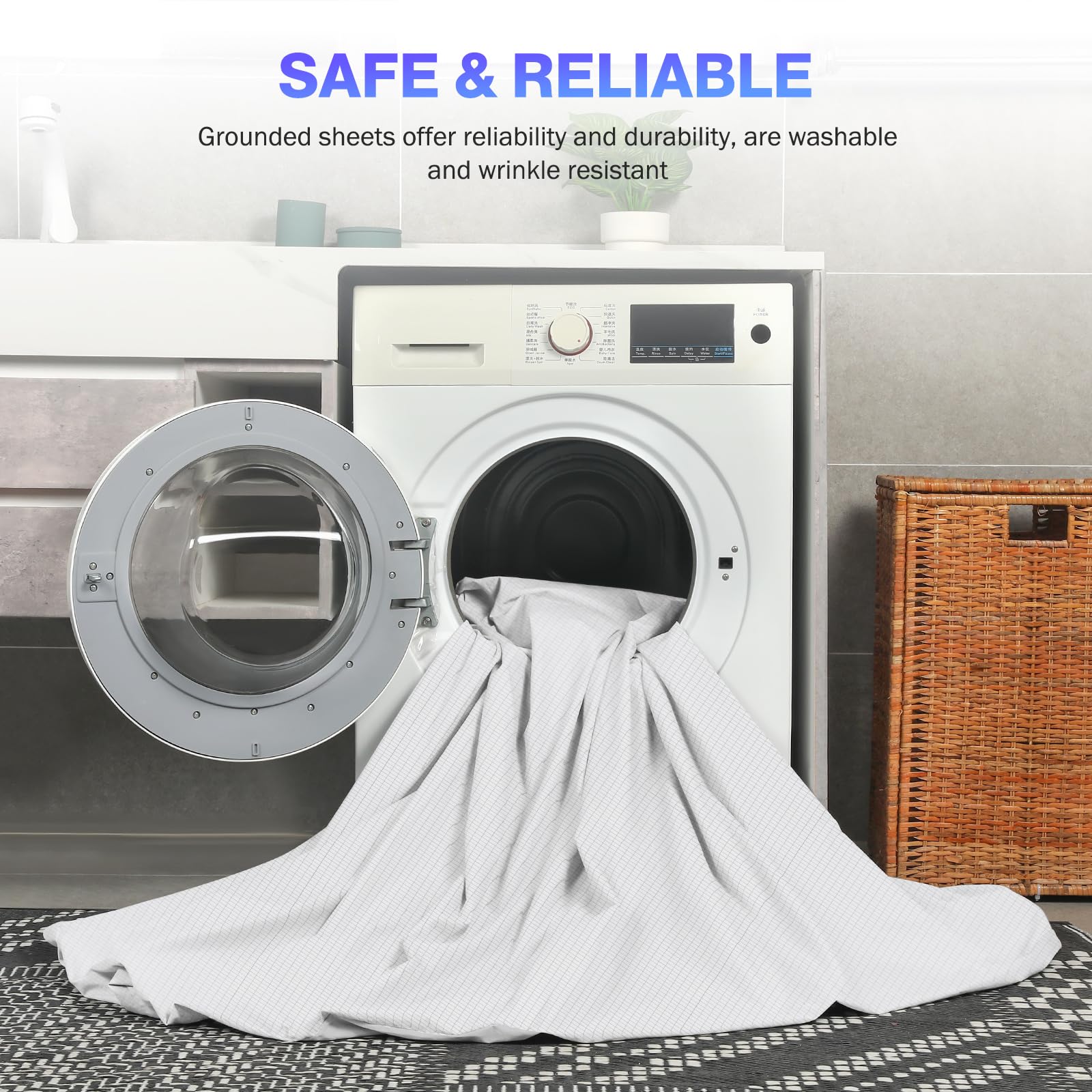 • 【Perfect Fit for Any Bed 】: Choose the ideal size (Twin, Full, Queen, King) to seamlessly cover your mattress. Our grounding sheet comes ready to use with its essential companion: a generous 16.4 ft grounding cord. Get everything you need for immediate grounding benefits without extra purchases. The grounded bed sheet does not carry an electric charge. It channels static electricity from the body to the earth via a grounding wire, dissipating the body's static electricity.
