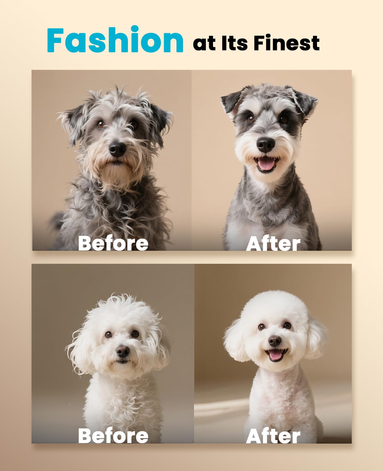 • Low Noise at 50dB for Stress-free Grooming: the silent motor ensures calm and relaxed pets hair shearing, even the most sensitive pets won't be scared, allowing them to enjoy a comfortable grooming experience