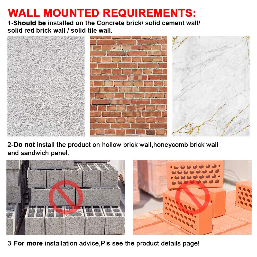 • 【Wall Mounted Requirements】 Concrete wall or brick wall is suggested for mounting this pull up bar and dip station. DON'T install on drywall, plaster walls and cavity.