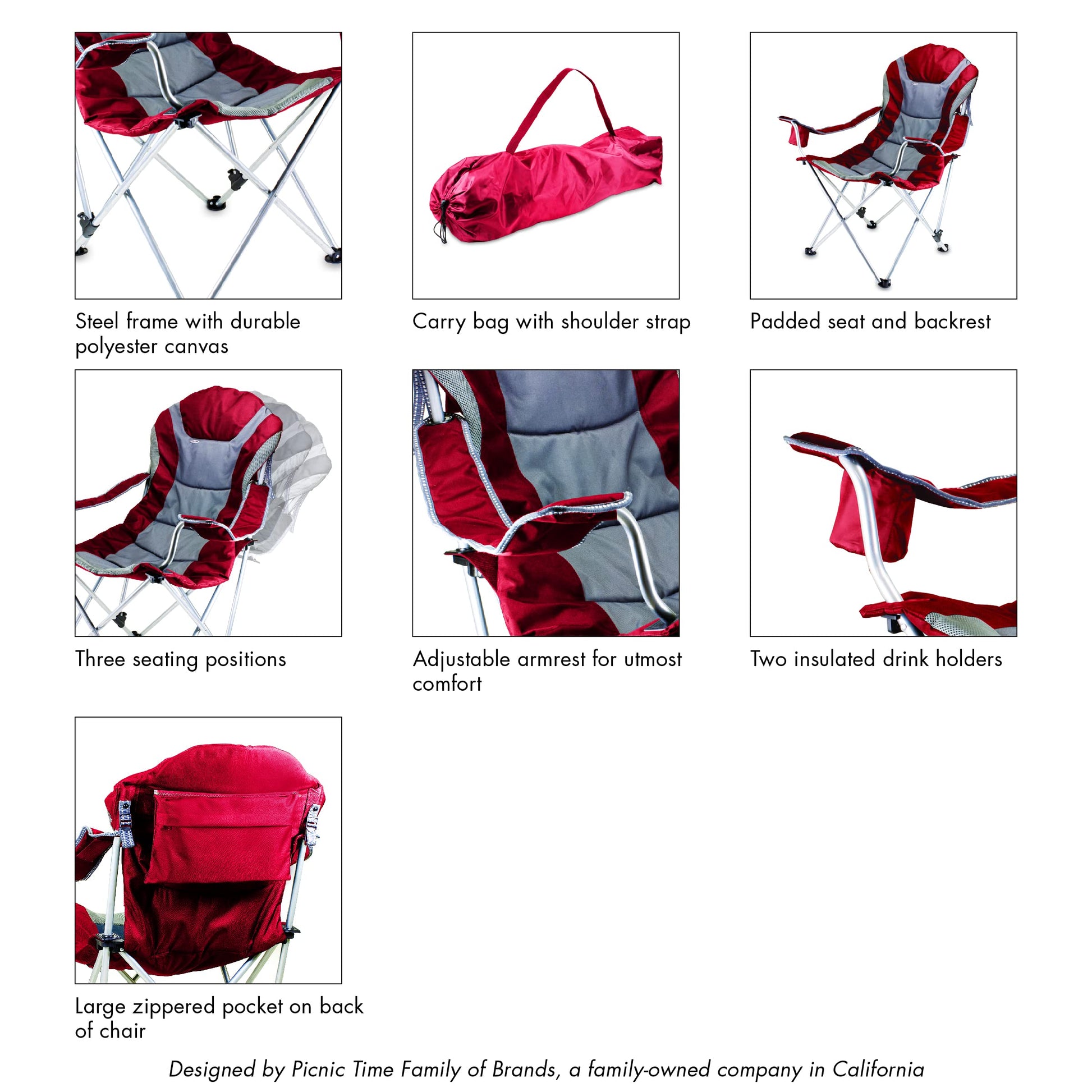 COLLAPSIBLE CAMPING CHAIR - The Reclining Camp Chair by Oniva, a Picnic Time brand, is the most comfortable collapsible chair around for all your outdoor adventures - an awesome beach chair, sports chair, picnic chair or lawn chair
