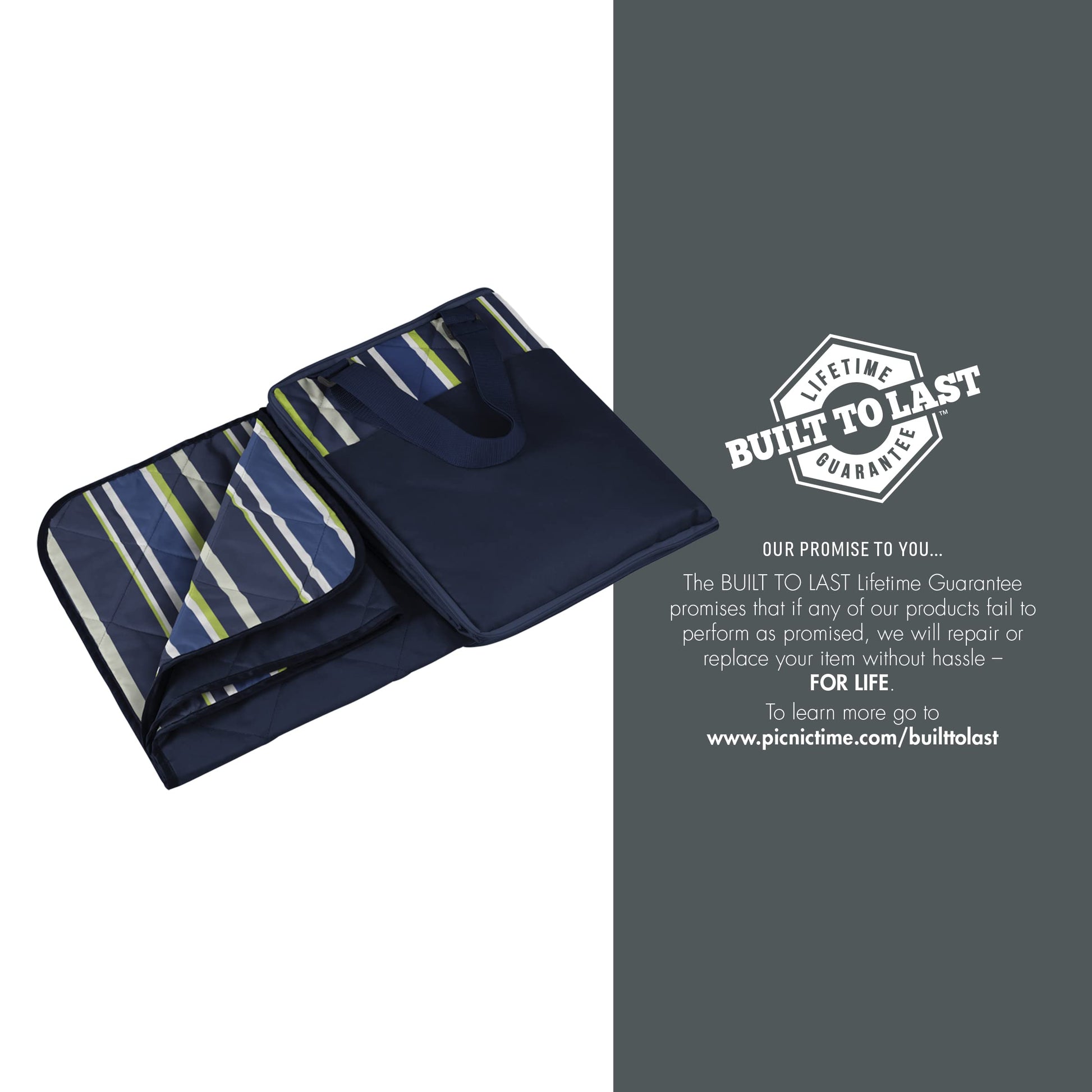 ONIVA - a Picnic Time brand - Vista Outdoor Picnic Blanket & Tote - Beach Blanket - Camping Blanket, (Blue Stripe Pattern with Navy Blue Exterior)
