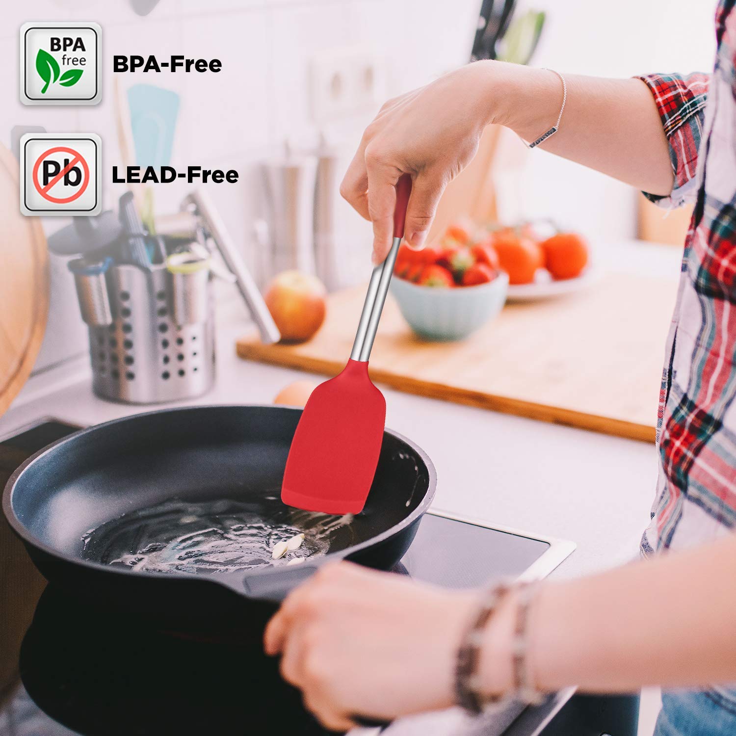 • BUILT TO LAST - The non-corrosive stainless steel handles have heat-proof silicone covers to protect your hands from burns. The heads are made from durable silicone. These cooking utensils were built to be a one-time purchase to last for generations.