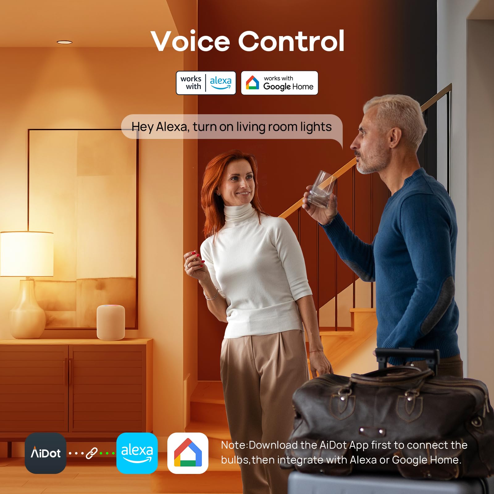 • 【Hands-Free Voice Control】Smart light bulbs that work with Alexa/Google Home/Siri, you could also use Siri after setting up Siri Shortcuts in AIDOT App. Control your OREiN smart edison bulbs to turn on/off, dim or brighten via simple voice commands, creating a truly customized home lighting experience.