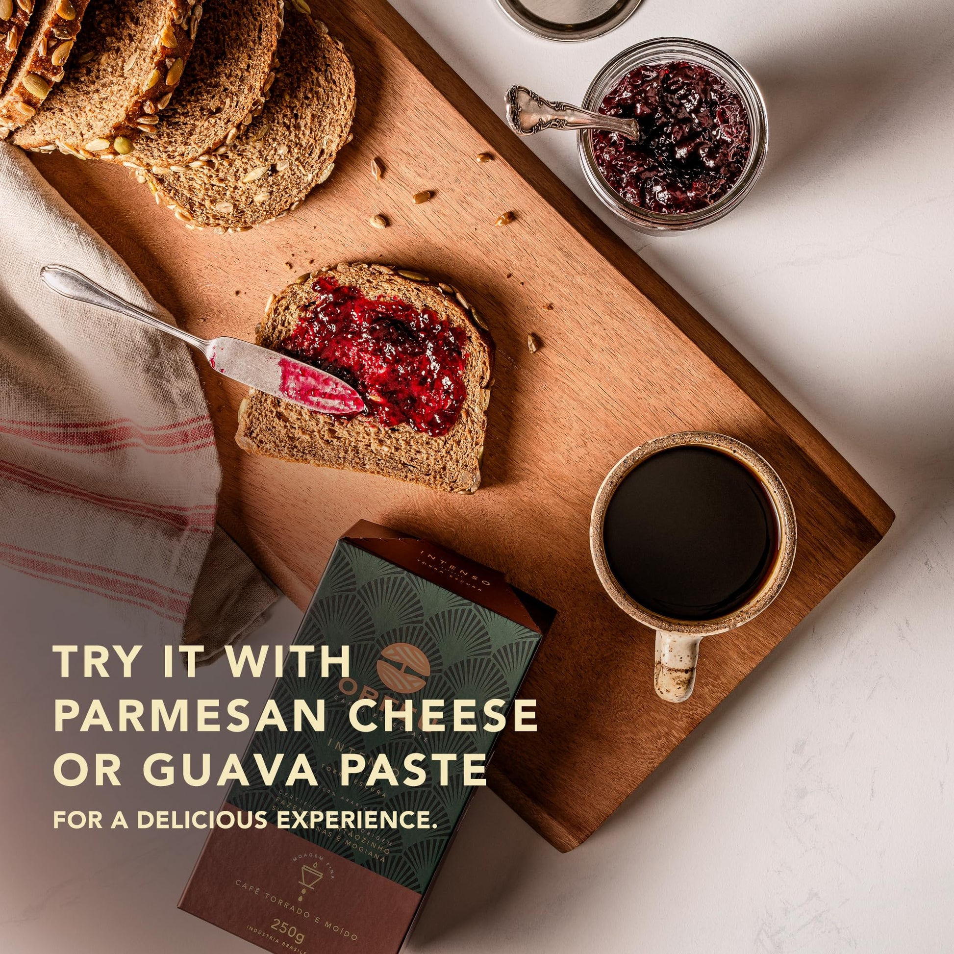 ORFEU - Special Coffee Intense - 100% Arabica Coffee, Dark Roast, Aroma of Toasted Caramel & Fruit Jam, Low Acidity, Made In Brazil, Velvety Body - 250g, 8.8oz