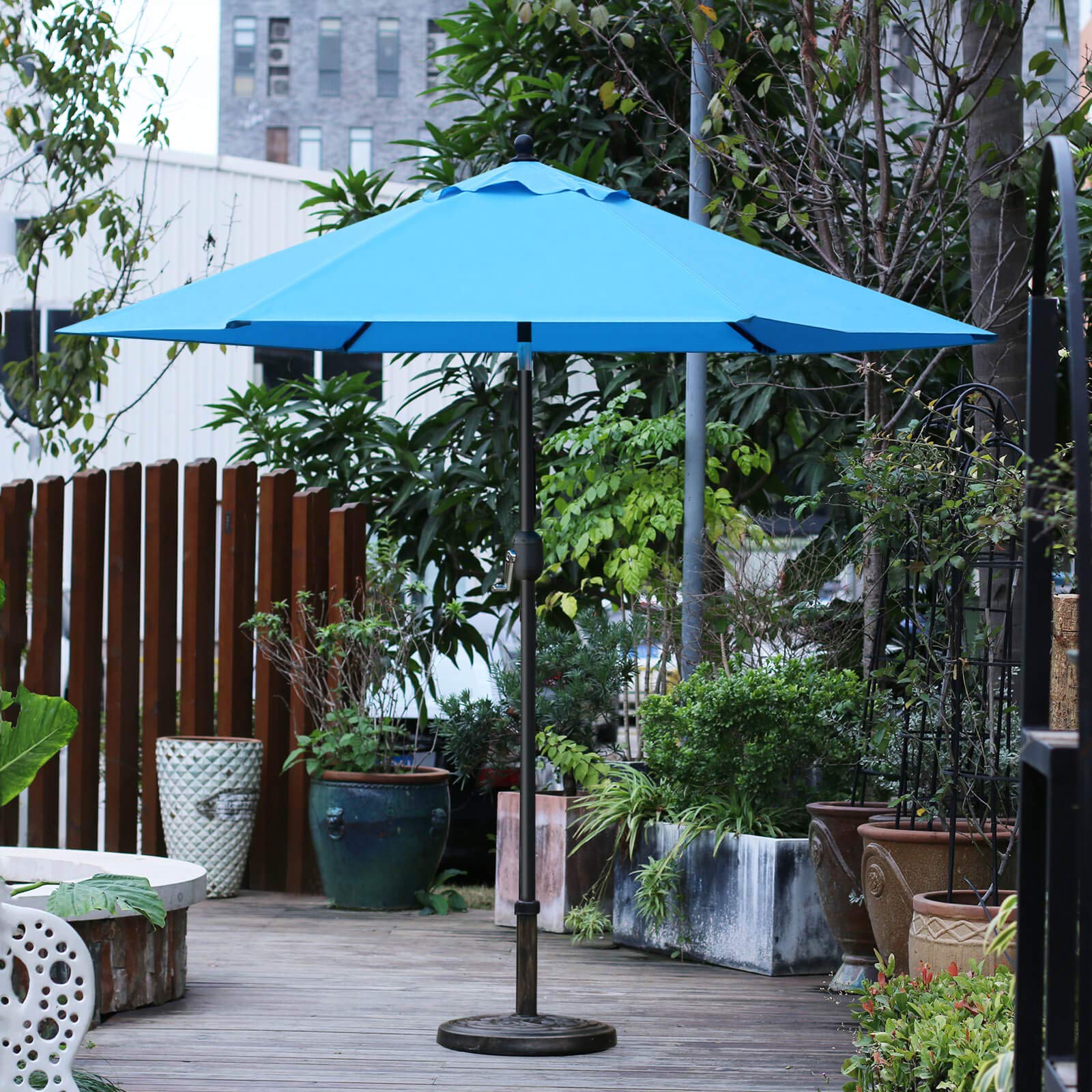 • HAND KNOB: This umbrella base features a hand knob for securing the umbrella to the base. We recommend you combine the base with patio table to provide more support to the umbrella, especially in windy day.